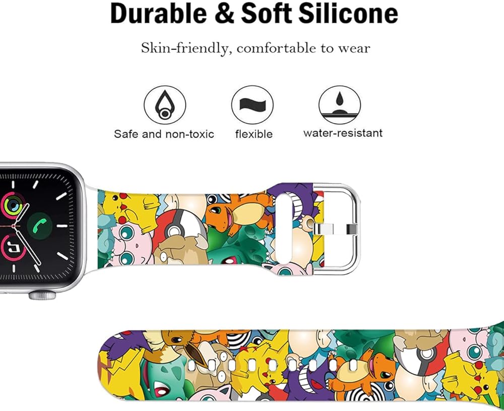 متوافق مع سوار ساعة Apple Pikacu Dinosaur 42mm 44mm 45mm/Ultra 49mm، حزام سيليكون سحري ناعم متوافق مع iWatch Series SE 9 8 7 6 5 4 3 2 1 للأطفال والرجال والنساء