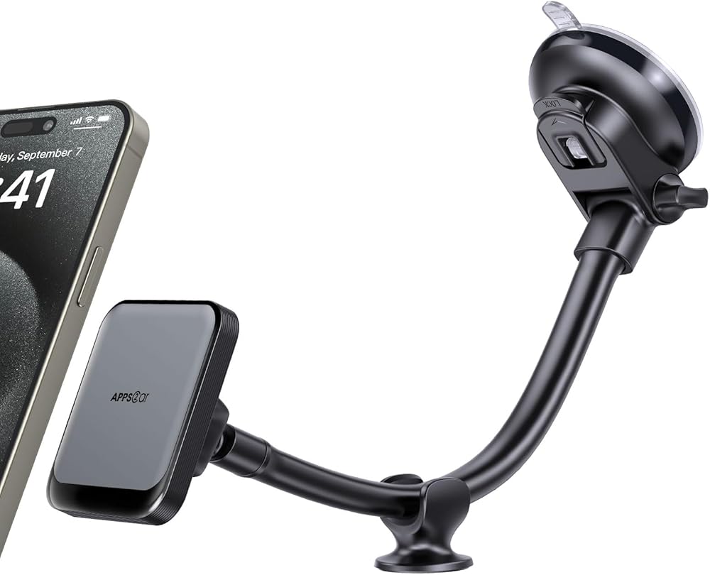 قوة مغناطيسية قوية: يتميز حامل الهاتف بـ 17 مغناطيسًا أرضيًا نادرًا قويًا N54، مما يوفر تثبيتًا قويًا ومستقرًا لجهاز iPhone الخاص بك. يمكنه حمل هاتفك بأمان حتى على الطرق الوعرة أو الكبح المفاجئ.