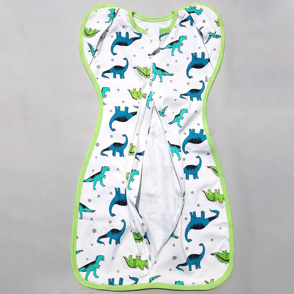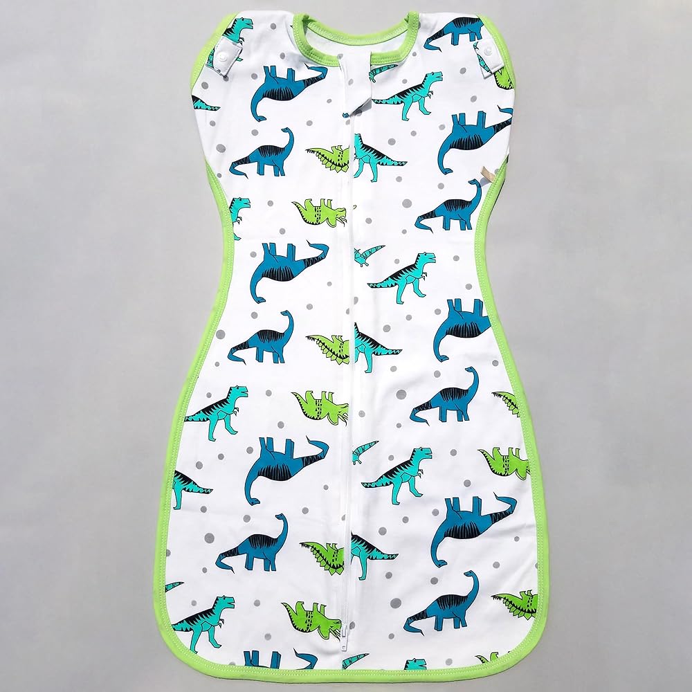 Transitional Dinosaur Swaddle Sack for Baby Sleep Sack with Arms Up Design Arms Free with Snap Button Mitten Cuffs 2-Way Zipper Sleeping Bag for Newborn Boys and Girls (Dinosaurs-Medium, 3-6 Months)