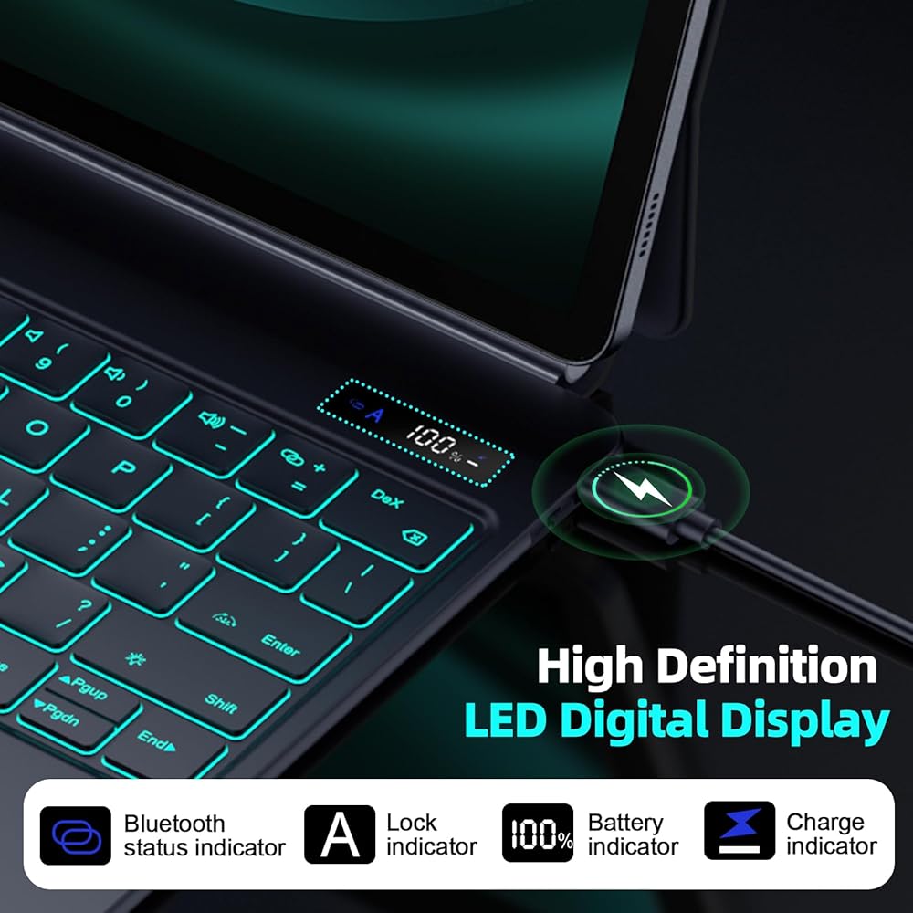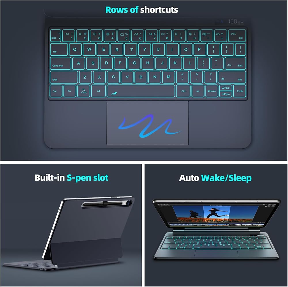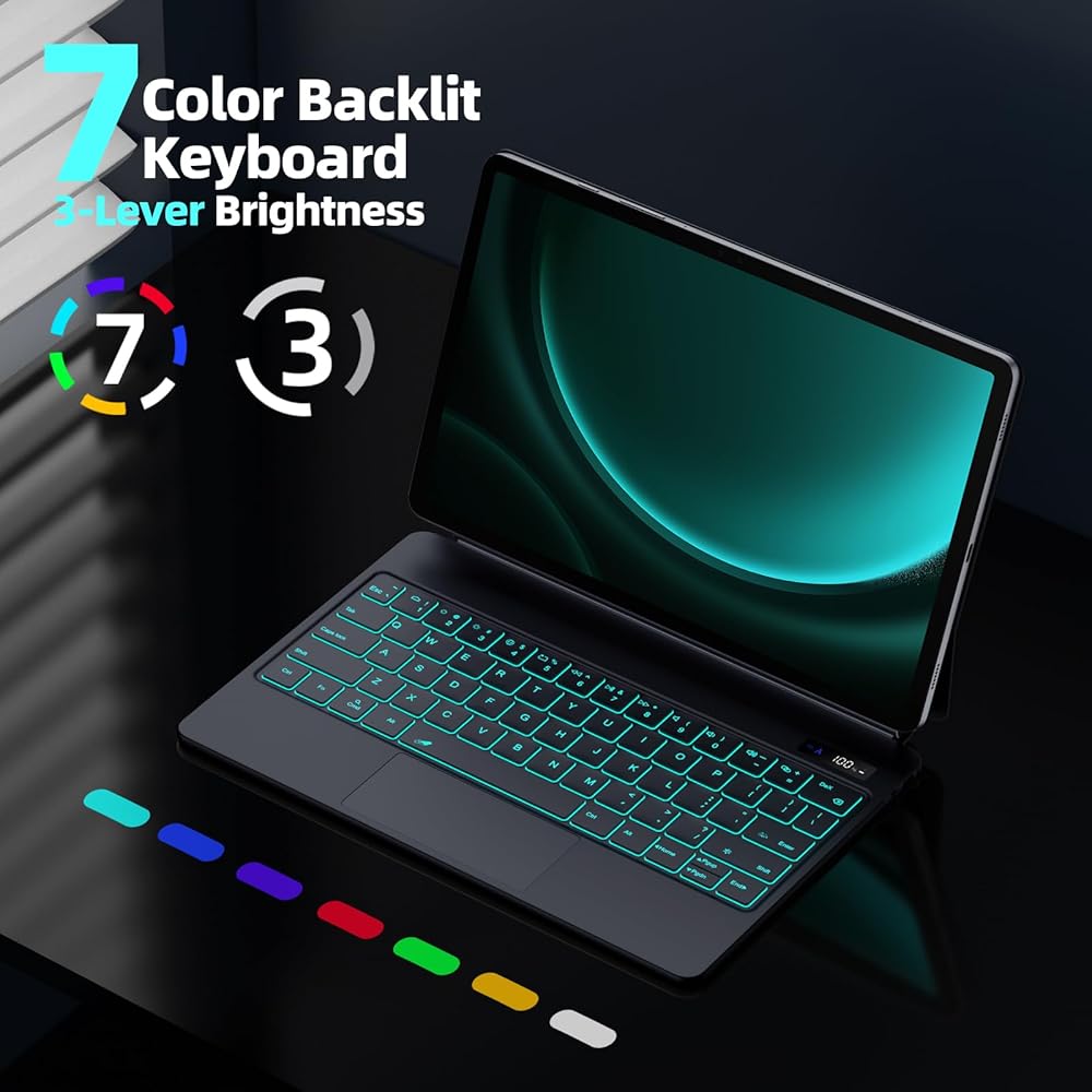 Gokoco Magic-Style Keyboard Case for Samsung Galaxy Tab S10+/S9+/S9 Fe+/S8+/S7+/S7 Fe 12.4 "، حامل مغناطيسي ناتئ عائم ، عرض LED 7COLOR ومضفي التتبع متعدد اللمسة.