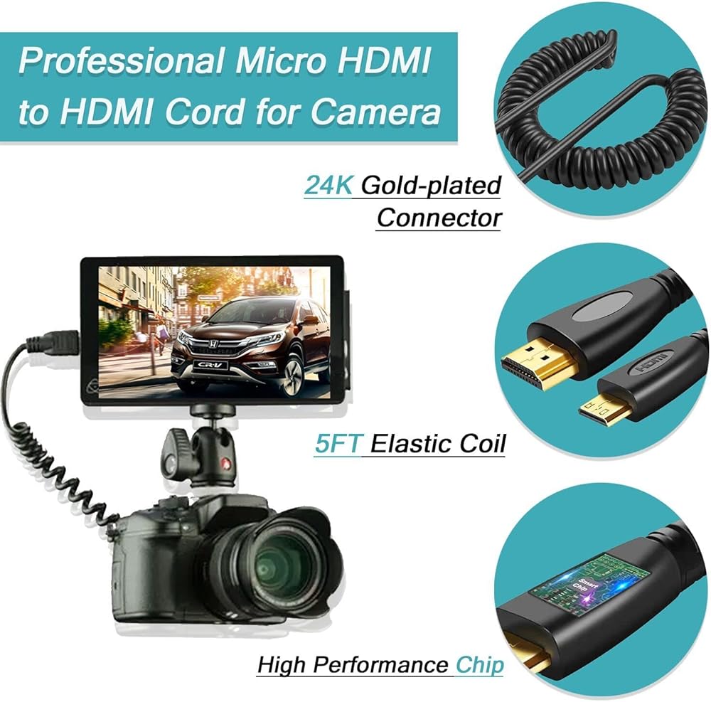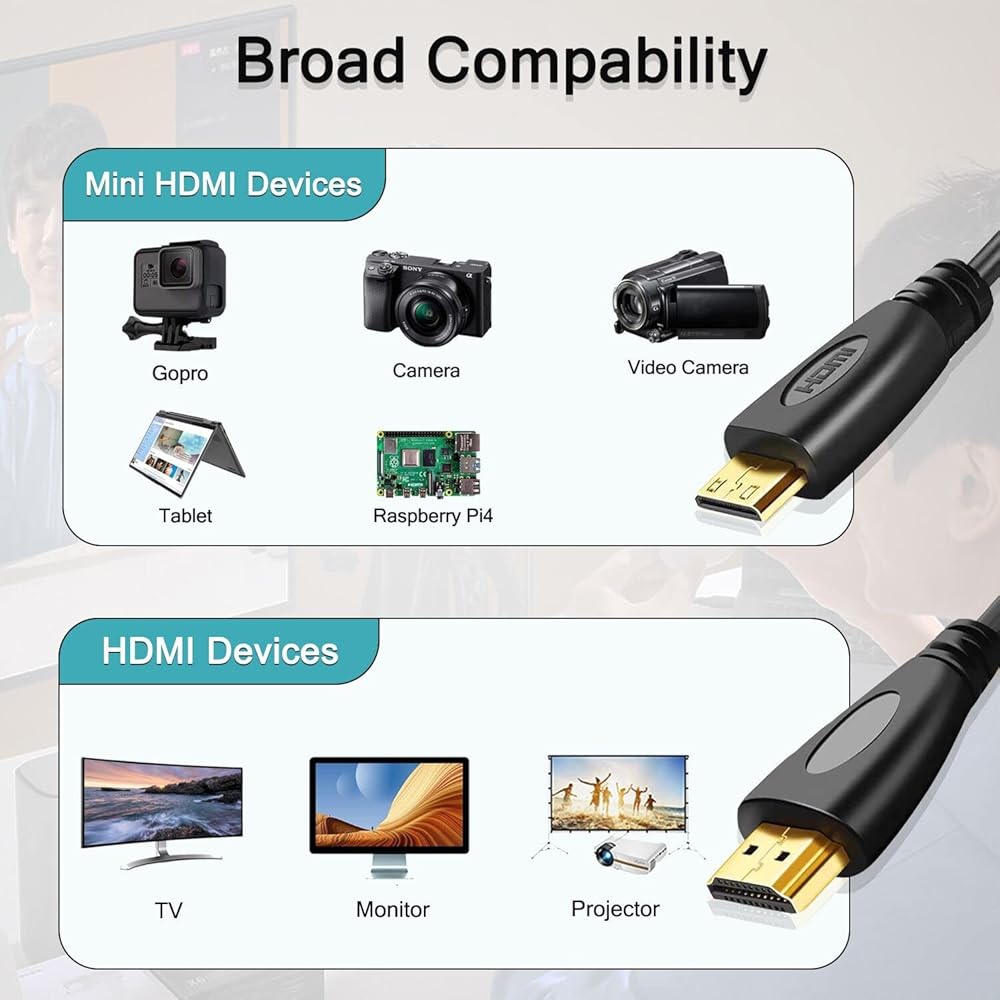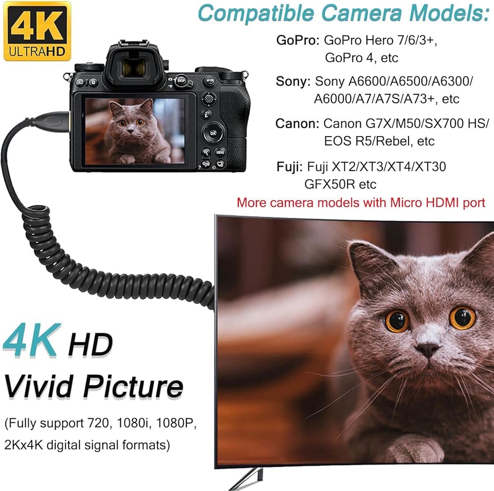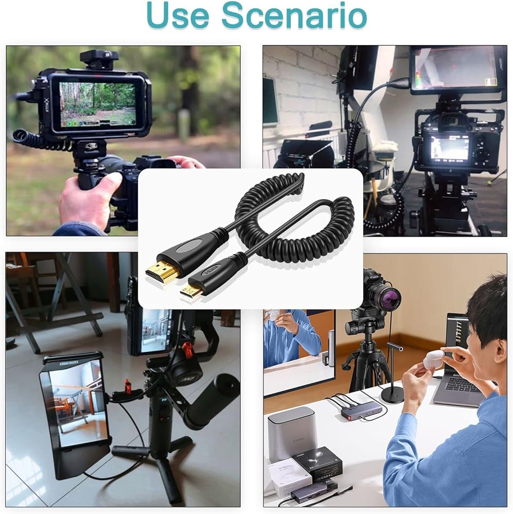 【توافق عالمي】: متوافق مع Hero 7 Black، Hero 6 Hero5، Hero 4 Silver، Hero 3 White، Hero3+، Raspberry Pi 4، Sony A5000 Handycam، Sony A6500 A6000 A6400 Nikon b500، Canon EOS M50، IdeaPad Miix 300 Tablet، Ideatab Miix 700 Miix 2 710 S6000، ThinkPad 10 8، Yoga 2 Pro 3 Ultrabook، Yoga 700 710 والمزيد من الكاميرا مع منفذ Micro HDMI.