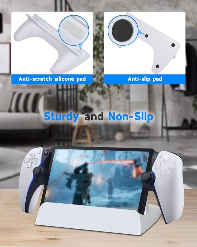 【Stable Placement & Anti-Slip】The Stand base is specially designed to store PS Portal Remote Player. This PS Portal stand has non-slip silicone pads on the ventral surface for protecting the console from scratching. Four anti-skid silicone at the bottom, which make it safer to prevent slipping.