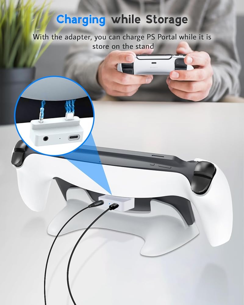 【Compact & Convenient】The stand and the adapter are small in size and portable anywhere. They are ideal accessories for PS Portal.