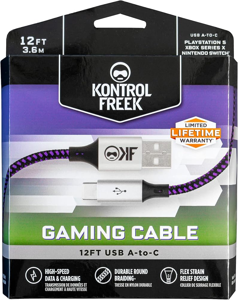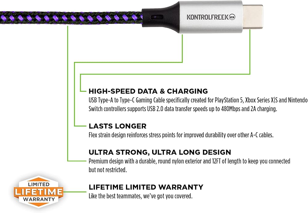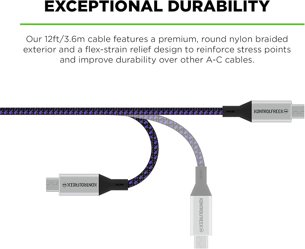 كابل KontrolFreek USB من النوع A إلى USB من النوع C بطول 12 قدم (3.6 متر) فائق القوة، وسلك شاحن USB A-C متوافق مع بلاي ستيشن 5، وإكس بوكس سيريز X|S، ونينتندو سويتش، وS10/S10e/S9/S8، ونوت 10 9 8 بلس/S8+