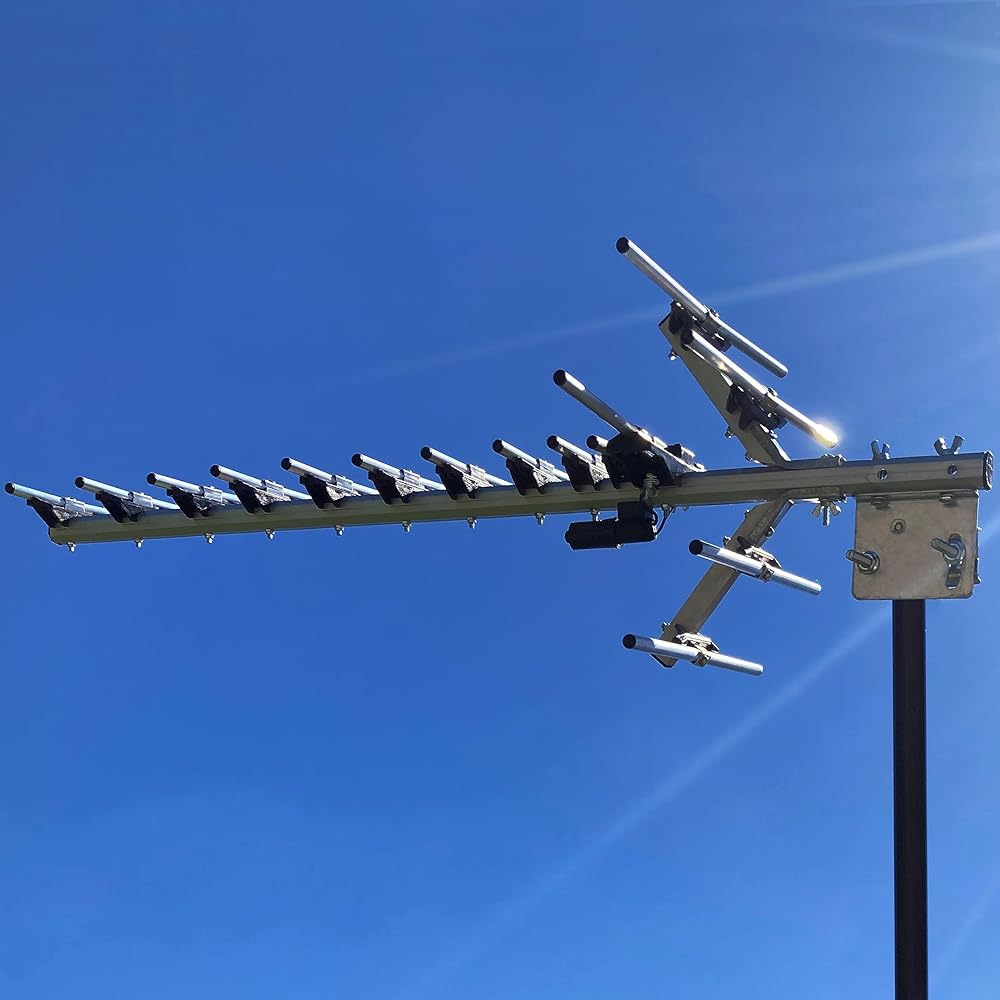 يبلغ مقاس هوائي HDTV 10.75 بوصة ارتفاعًا × 16.5 بوصة عرضًا × 35.25 بوصة عمقًا؛ يتضمن أجهزة تثبيت مناسبة لجميع الأحوال الجوية ودعامة إمالة لقدرات التصويب المختلفة على الصاري الموجود في الهواء الطلق أو في العلية؛ مثالي للمناطق الريفية والضواحي