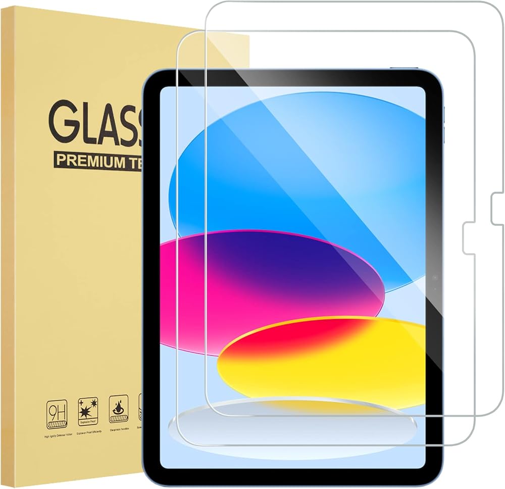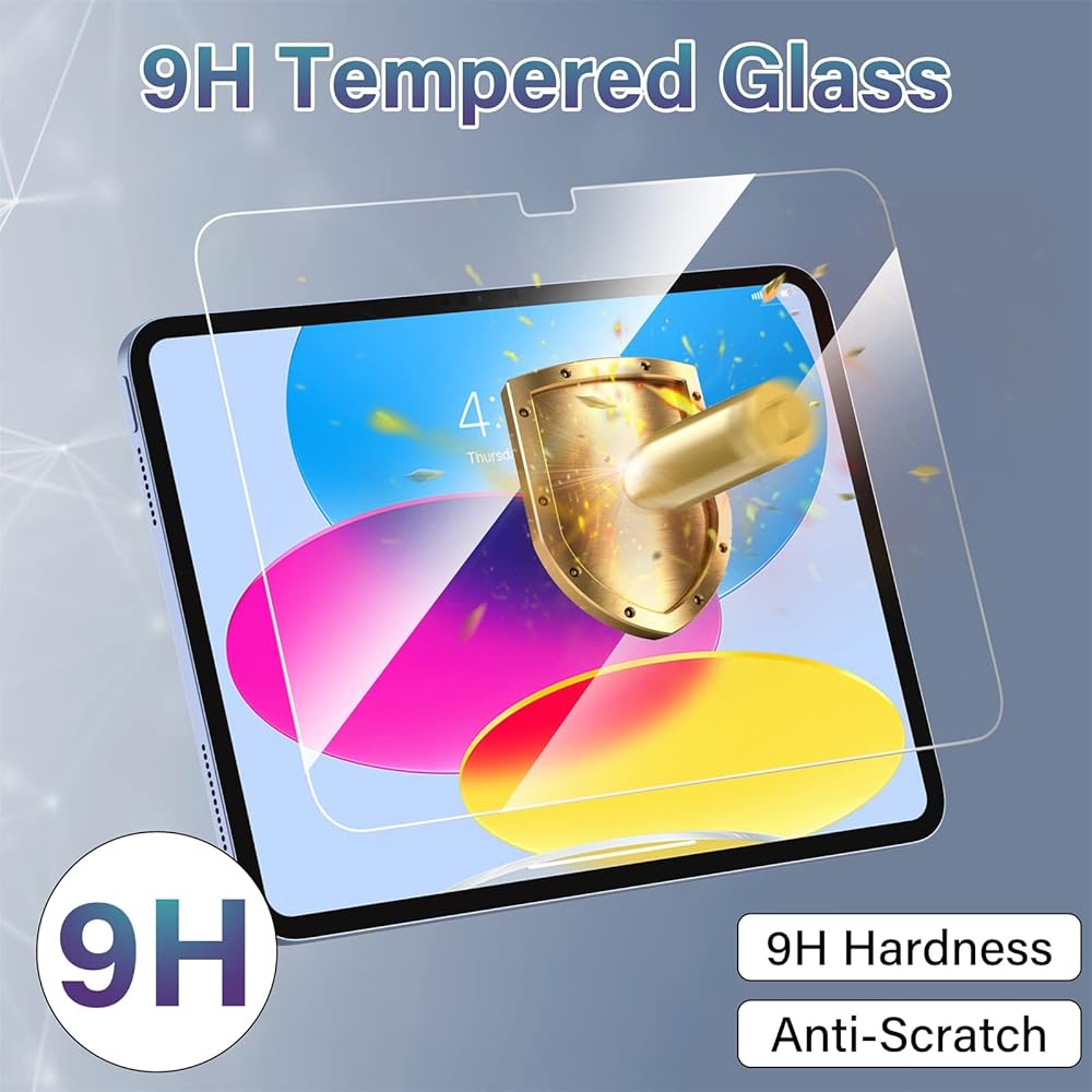 • 【Easy to Install】:This package includes 2 pack 10.9inch iPad 10th generation screen protector. This 9H Tempered Glass Screen protector will adhere to the screen automatically and quickly without any air bubbles.