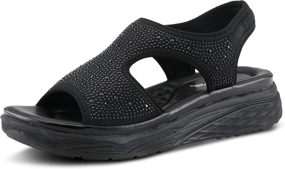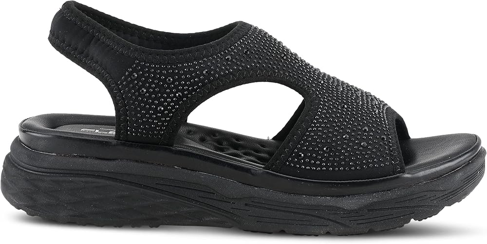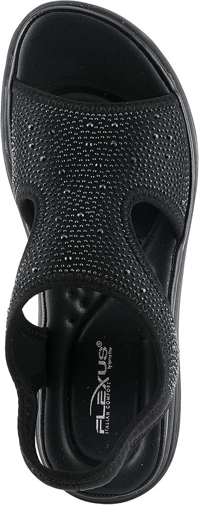 Women's Flexus, Mallo Sandal. These slingback sandals make the perfect summer wear. A soft, stretchy, Lycra upper strap helps this sandal conform to your foot for an unbeatable fit. A cushioned footbed and durable sole ensure long lasting comfort. Soft lycra stretch upper with pretty rhinestonesEasy to wear, slip-on styleFull length padded footbedStraight last feature improves your overall body postureShock absorbing EVA outsole