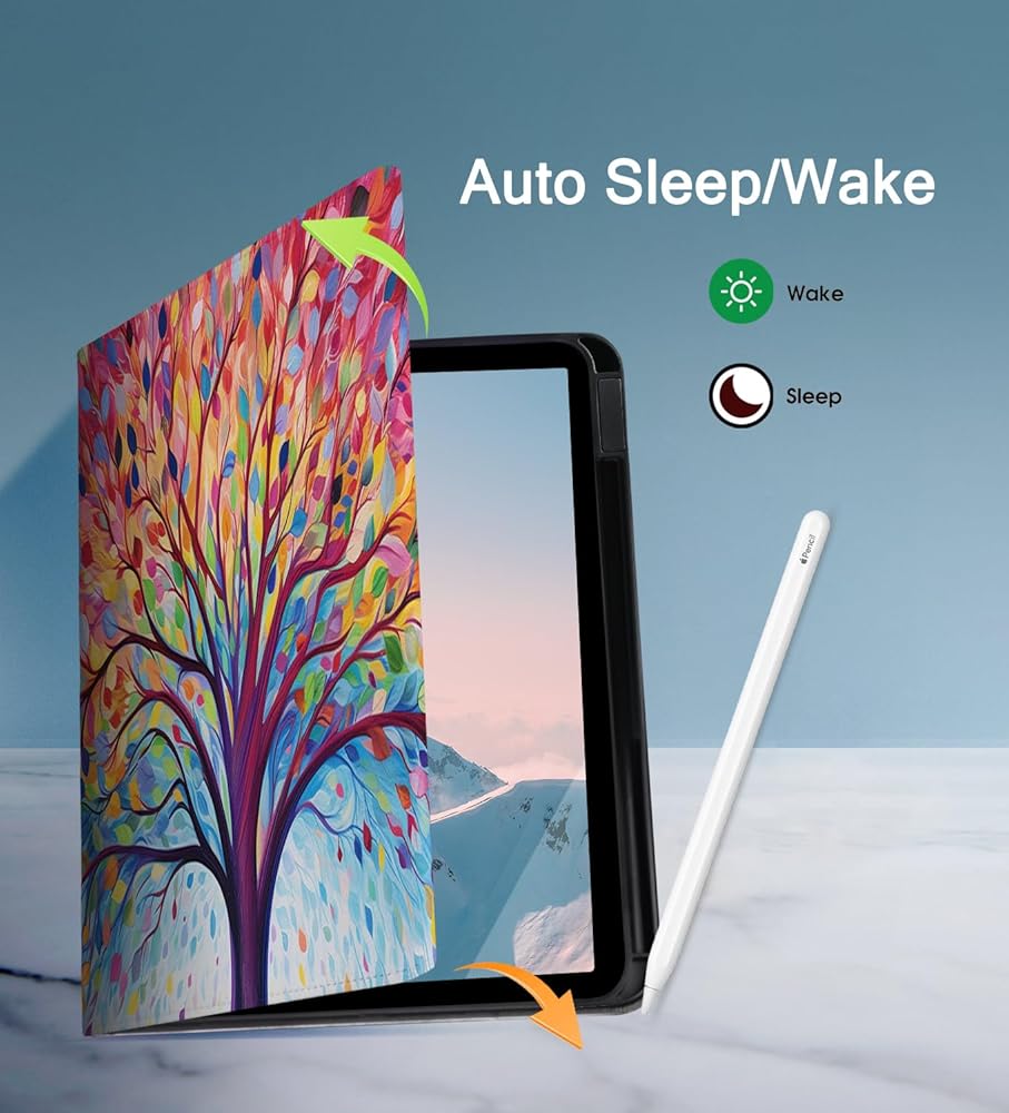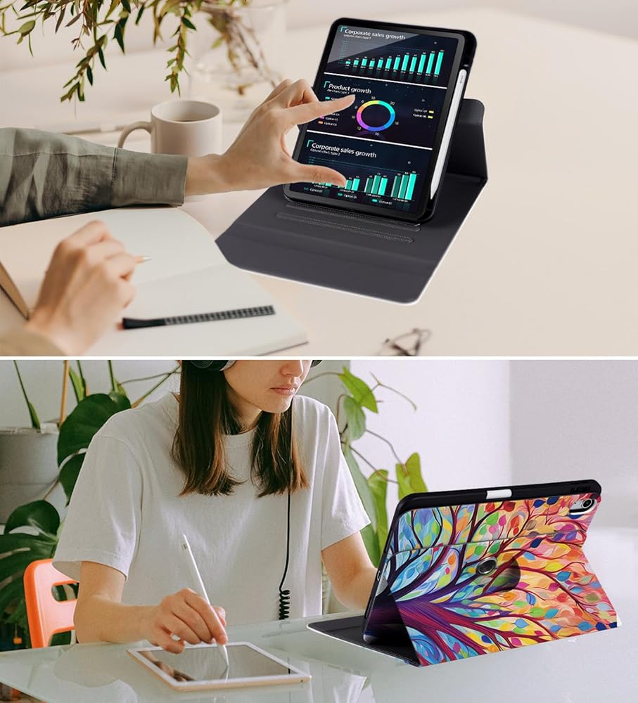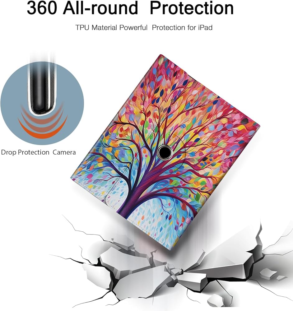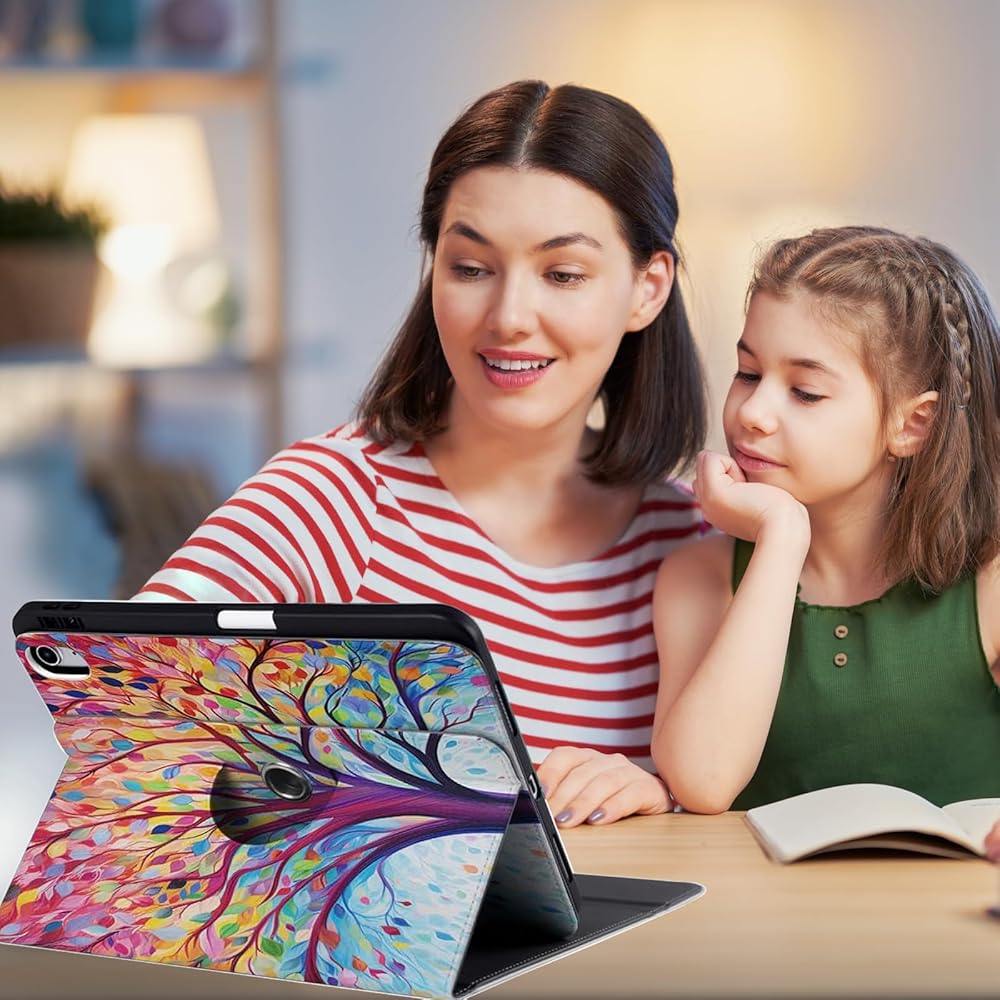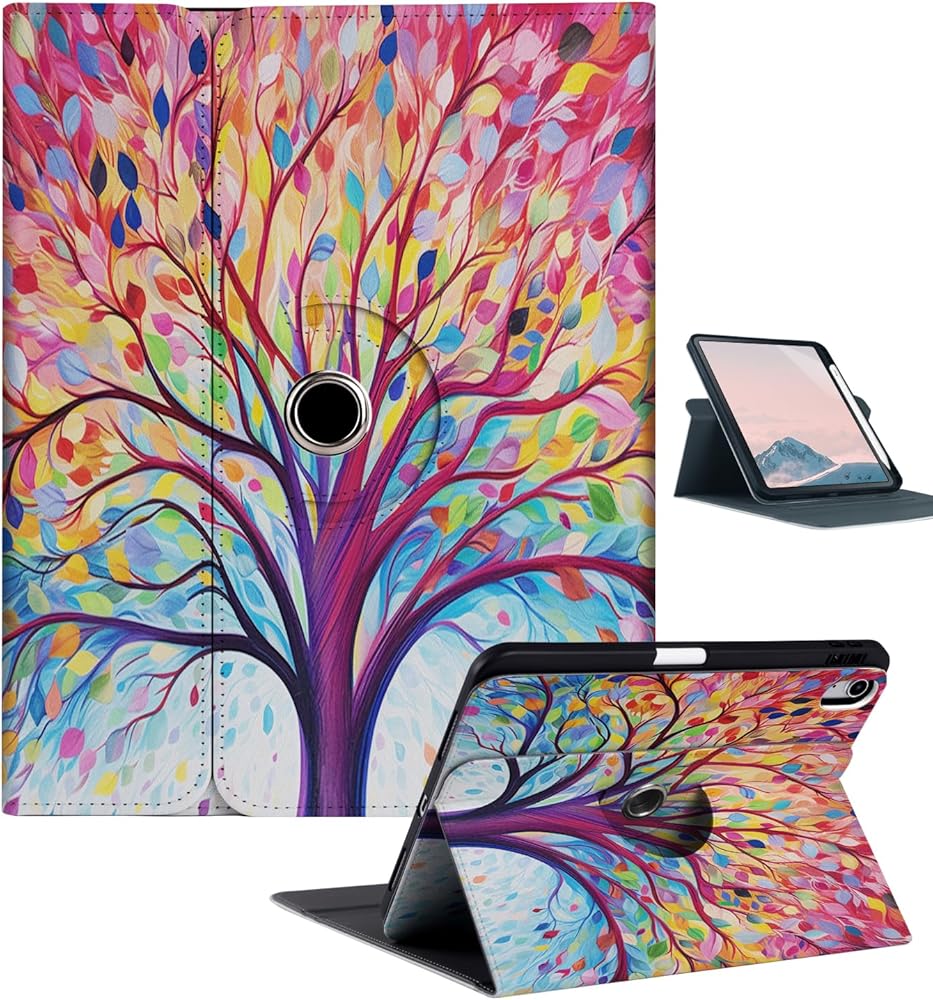 حافظة iPad Air الجيل الخامس الجديدة 2022/Air الجيل السادس مقاس 11 بوصة M2 2024، حافظة دوارة 360 درجة، غطاء عرض متعدد الزوايا مع حامل قلم رصاص لجهاز iPad Air 4/5/6 - شجرة ملونة