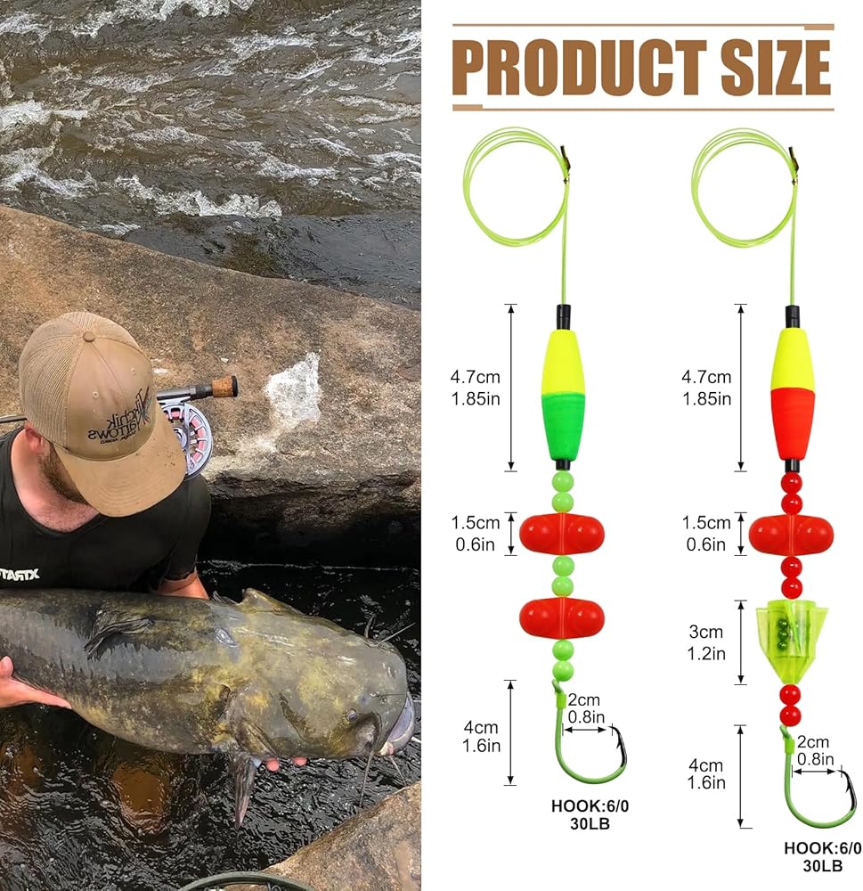 [Specially Designed for Catfish Fishing]:Specially designed products that combine the body structure of catfish. There are floats, rattles, beads, fishing hooks, and hand-tying them together.