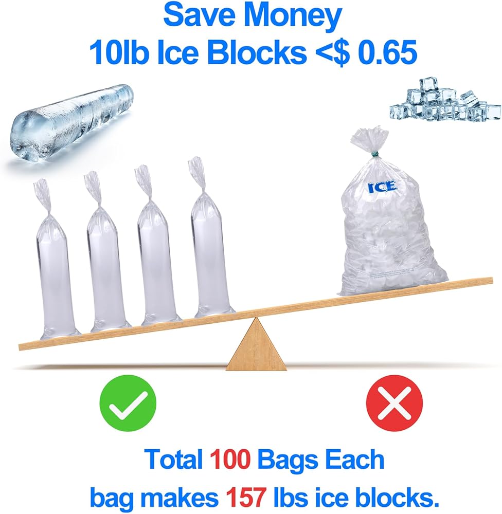 100 Ice Bath Bags: You will receive 100 ice bath bags, each ice bath bag can make 1.57 lbs extra large ice blocks, up to 157lbs frozen ice cubes at one time, you no longer need to use multiple ice block molds, which makes the process of making ice blocks much more efficient and convenient, allowing you to save time and cumbersome freezing time, and quickly enjoy your ice bath time.