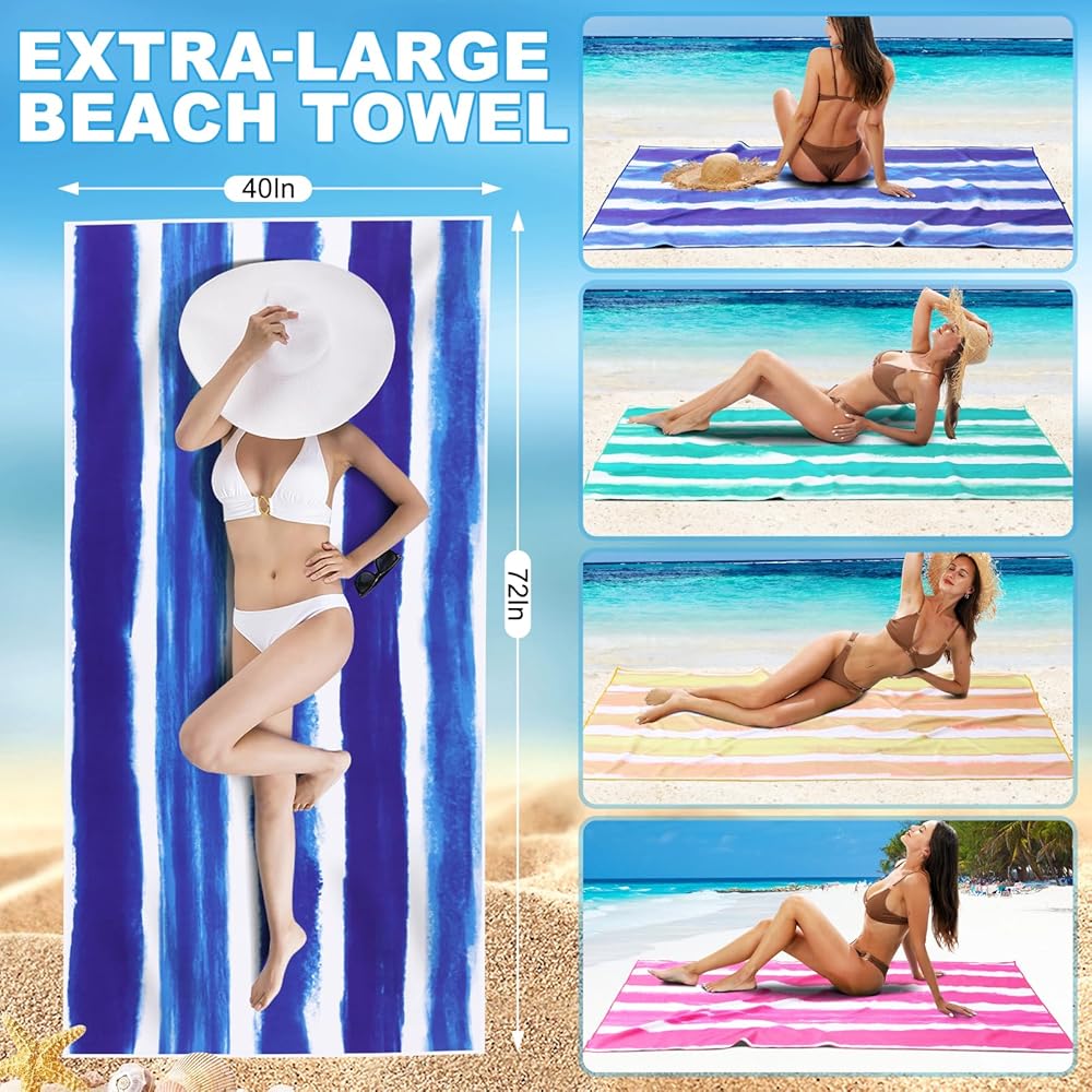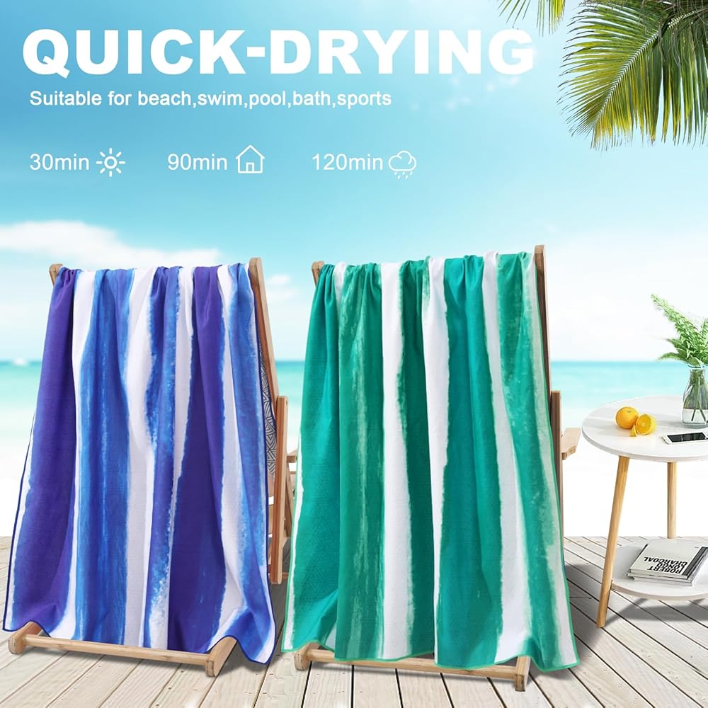 2 Pack Microfiber Oversized Beach Towel Lightweight Thin Sandproof Compact Quick Dry Clearance Towels Extra Large Sand Free Pool Travel Beach Essentials Accessories Women Men Adult Gift Green Stripe