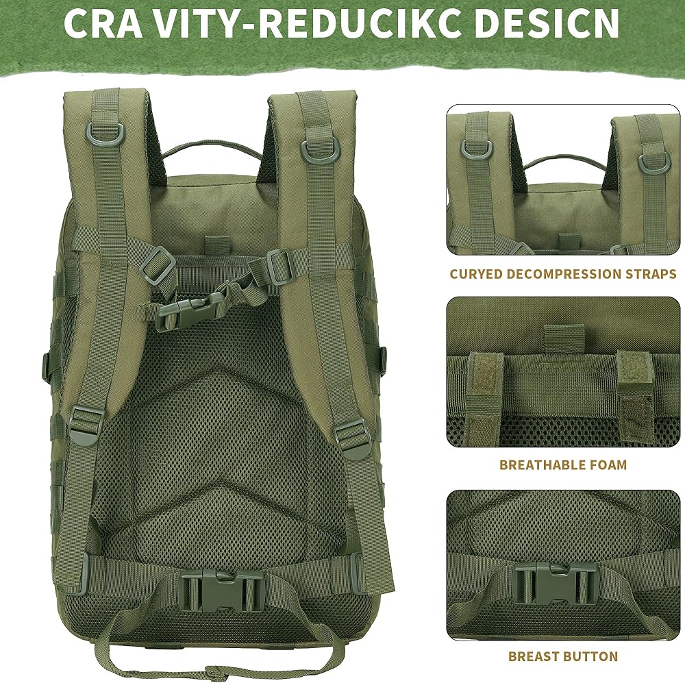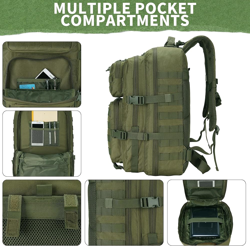 حقائب ظهر تكتيكية عسكرية سعة 45 لتر، حقيبة ظهر تكتيكية لمدة 3 أيام، حقيبة ظهر للياقة البدنية، حقيبة ظهر لمدة 3 أيام، حقيبة مشي لمسافات طويلة ورحلات نهارية (ArmyGreen)