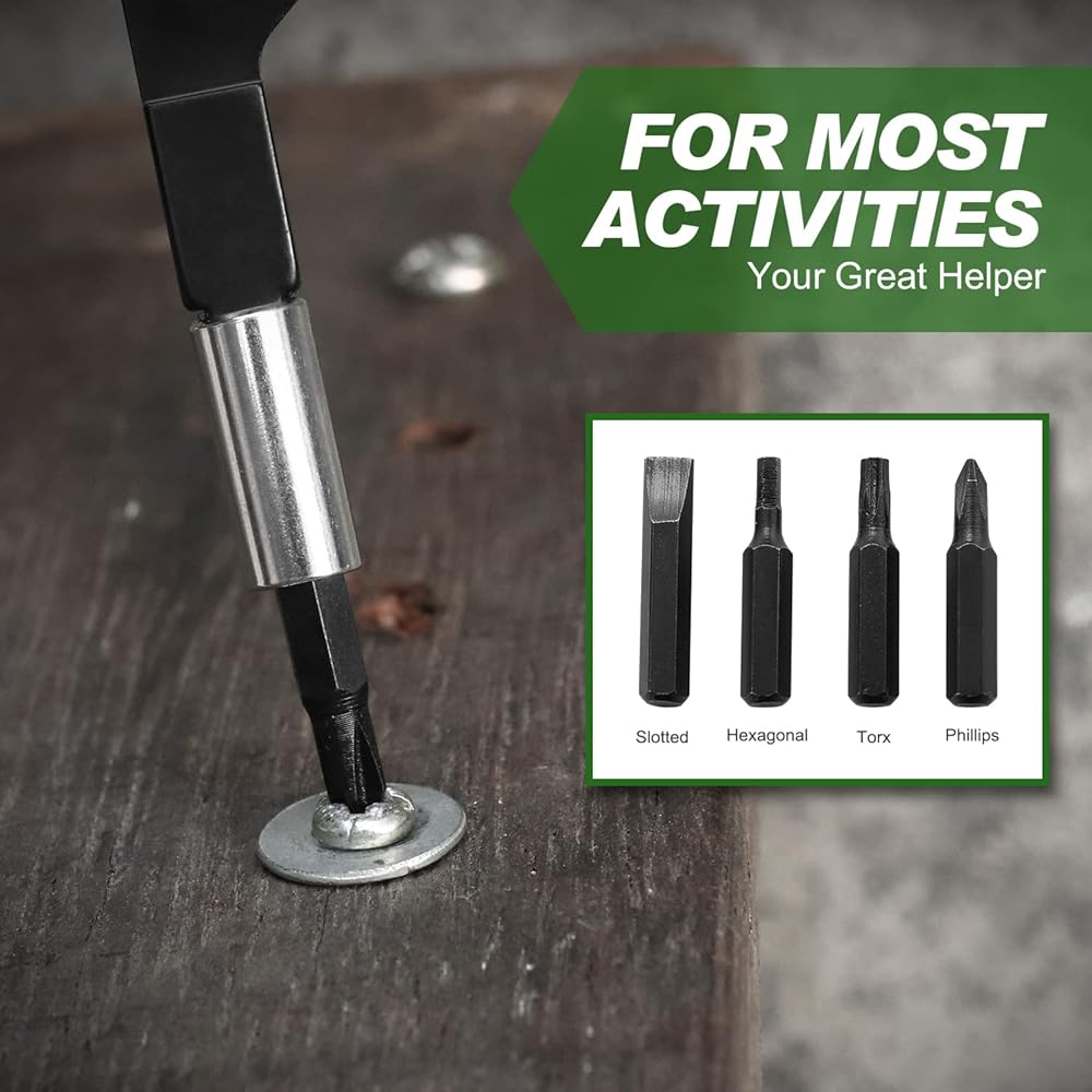 • 【أدوات مطرقة 14 في 1 مطورة جديدة 】لقد أضفنا جهازًا جديدًا لفتحة لقمة مفك البراغي على أداة المطرقة المتعددة لاستبدال عدة قطع مختلفة. (مع طرف مسطح ومتقاطع الشكل ومسدس وشكل نجمة). هيكل المستقيم تمت أيضًا ترقية الشفرة وشفرة المنشار.