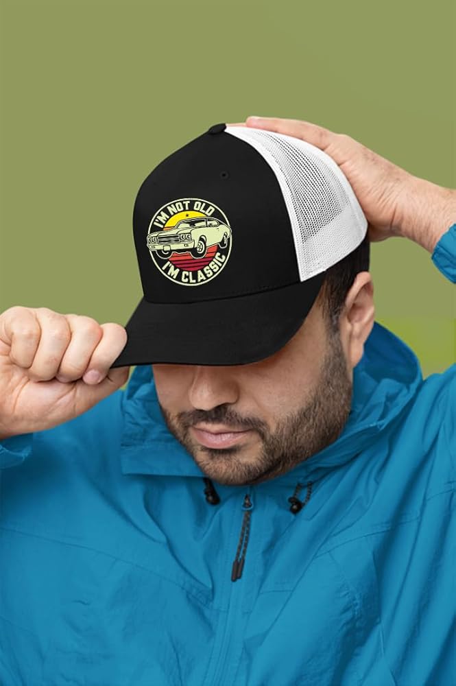 FUNNY FISHING TRUCKER HAT: This trucker cap features a vintage design that reads "I'm not old, I'm classic" which makes it a great gift not just for men, grandpa, dad, husband but also anyone who loves fishing things retro.