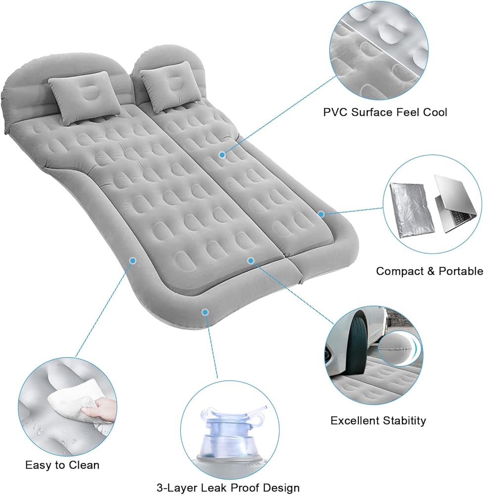 مرتبة هوائية للسيارة ISWEES، مرتبة هوائية لسيارات الدفع الرباعي، مرتبة سيارة لسيارات الدفع الرباعي، مرتبة كاملة مع مضخة كهربائية ووسادتين، مرتبة هوائية لسرير السيارة، وسادة نوم محمولة متدفقة للمنزل والتخييم والسفر في الهواء الطلق