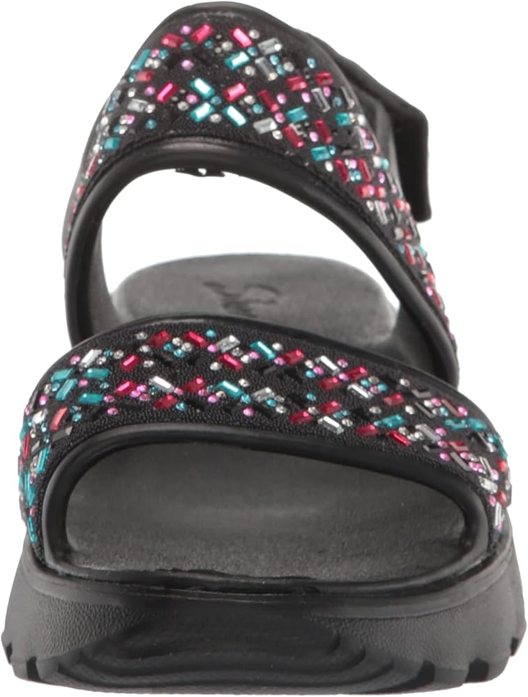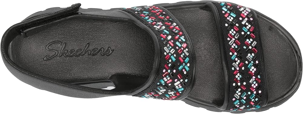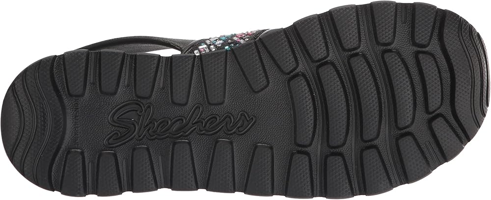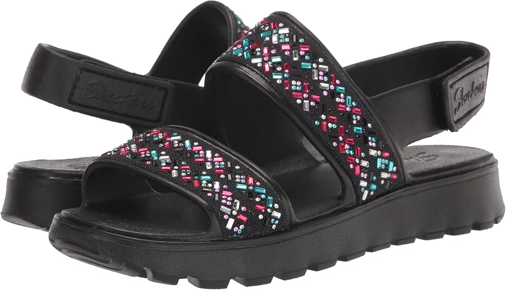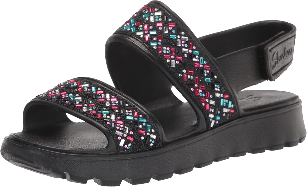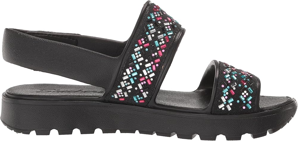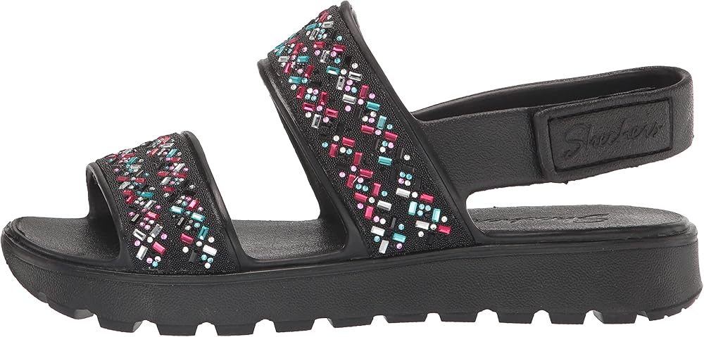Skechers Girl's Foamies Footsteps - صندل Lil Glam Party Wedge، أسود، 5 طفل كبير