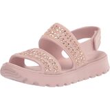 ستتألق خطواتها مع صندل Foamies®: Skechers Footsteps - Lil Glam Party. يتميز هذا الصندل بتفاصيل حجر الراين بجزء علوي صناعي مع أحجار الراين الملونة ونعل سميك.