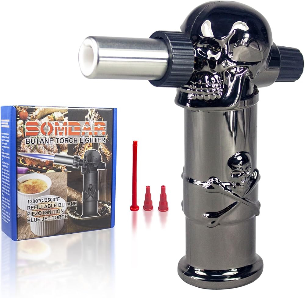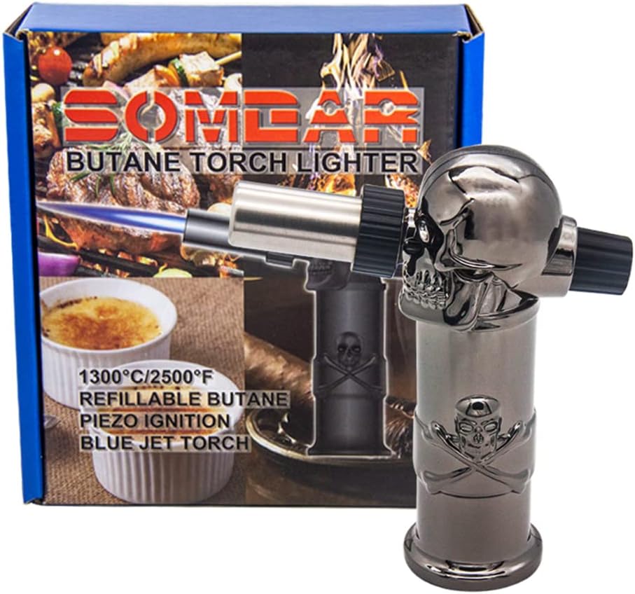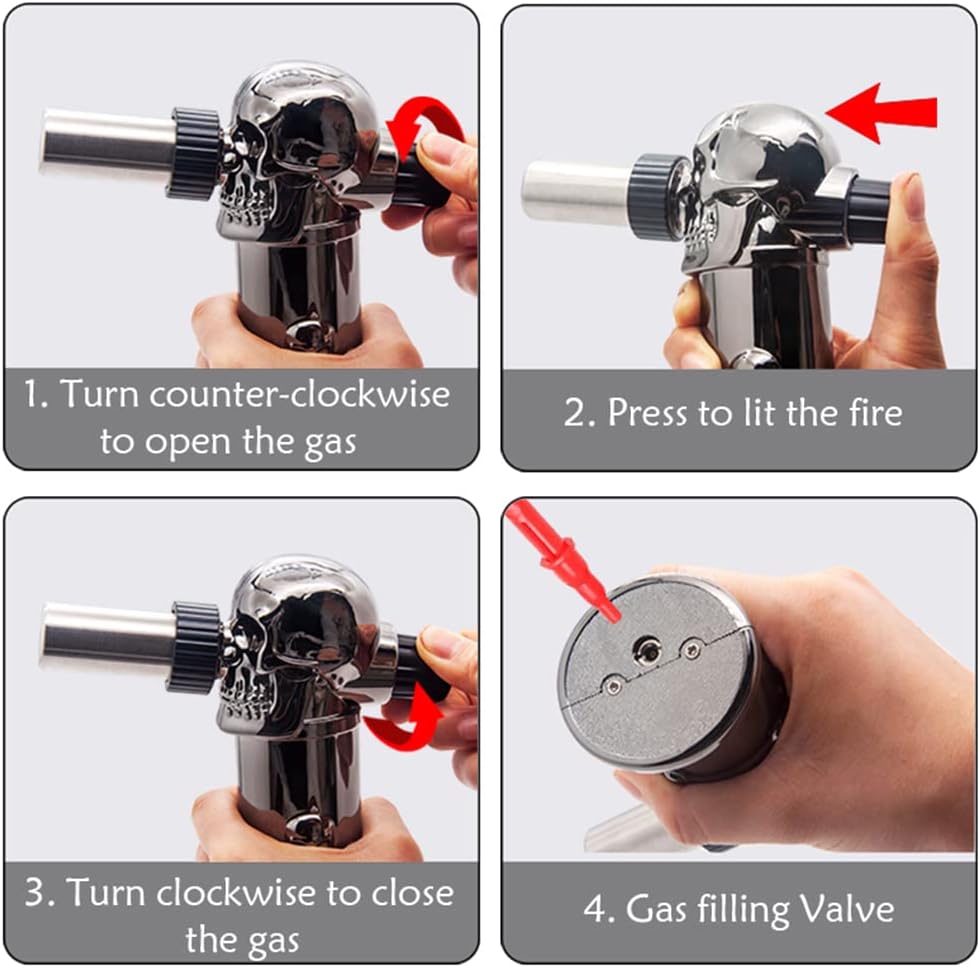 ☀️New design of the torch lighter: The skull design is novel and beautiful. And the handle design has a better grip. Once any problems, please feel find us. We will listen to you and bring you the best experience!