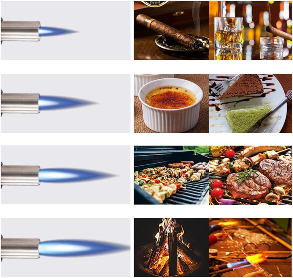 ☀️Multifunctional Butane Torch: This multifunctional cooking torch is not only used for kitchen food, but also for grilled steak, cremes brulee, outdoor grilling, camping, welding DIY jewelry, cigars, Dabs, bar cocktails, lighting fireplaces and campfires, etc.