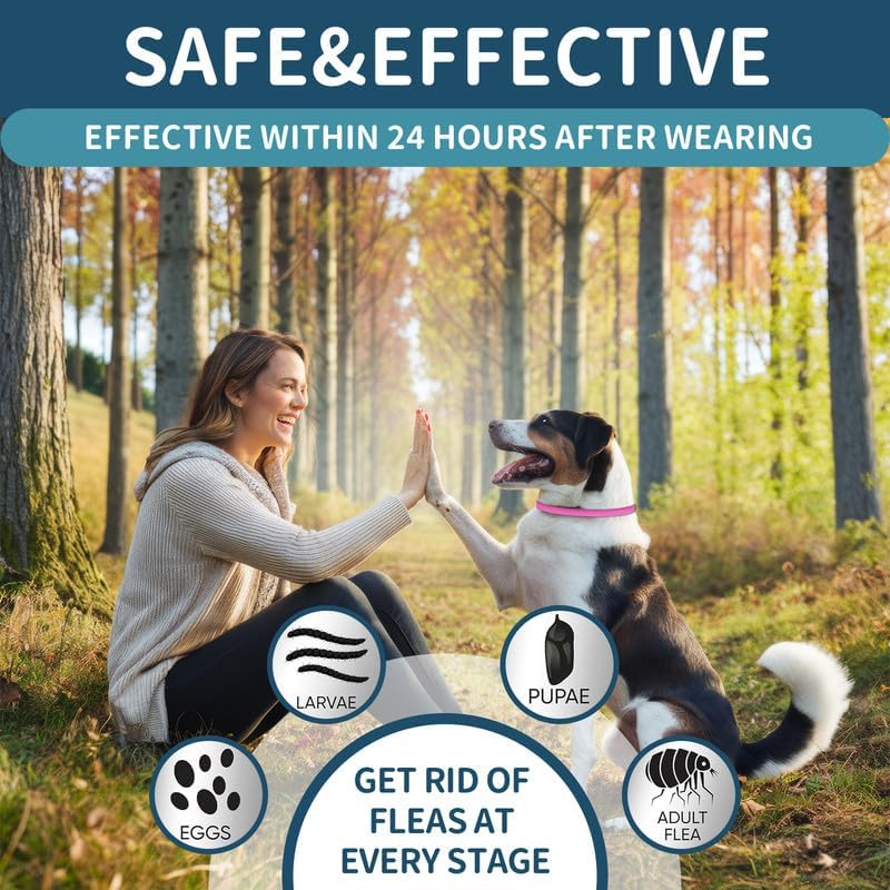 SAFE AND EFFECTIVE: Designed based on the growth cycles of common harmful parasites, these collars provide an effective flea and tick treatment. Made with a human-safe formula, our dog flea collar contains 100% natural essential oils that are safe, fragrant, and non-irritating, they prevent fleas and ticks at all stages, offering a powerful yet gentle solution to keep your dog pest-free.