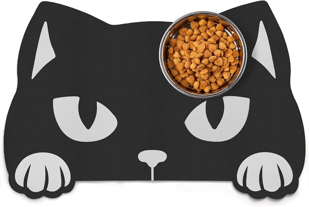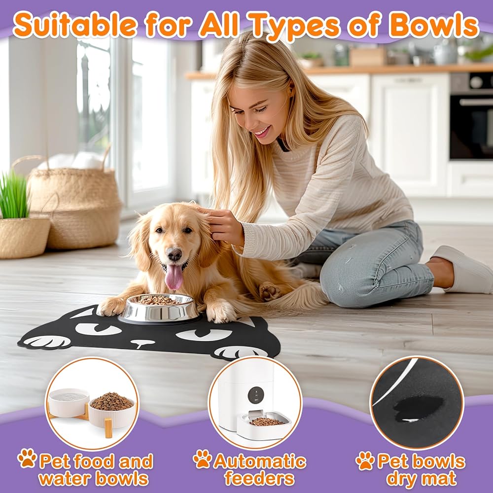【Protect Floors from Food & Water】Designed to prevent your pet from making a mess on the floor while eating, place the pet feeding mat under your pet's food and water bowls to prevent spills or splashes on the floor. Keep mealtimes tidy. The Black Cat style design adds a fun touch to your home decor.
