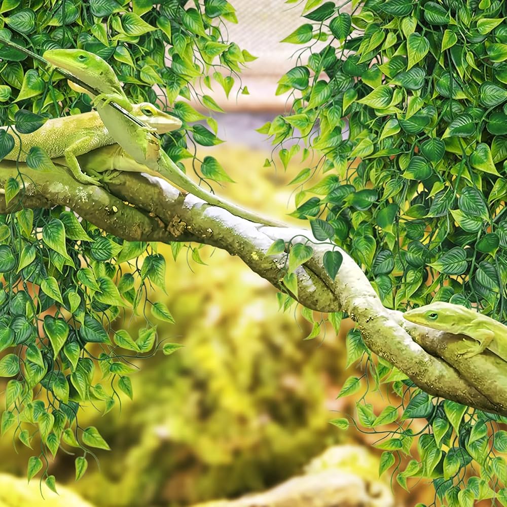 • These Bearded Dragon Tank Accessories are designed to replicate a natural environment, allowing your pets to hide and roost. Hanging reptile plants are designed in a shape of real leaves, looking realistic.