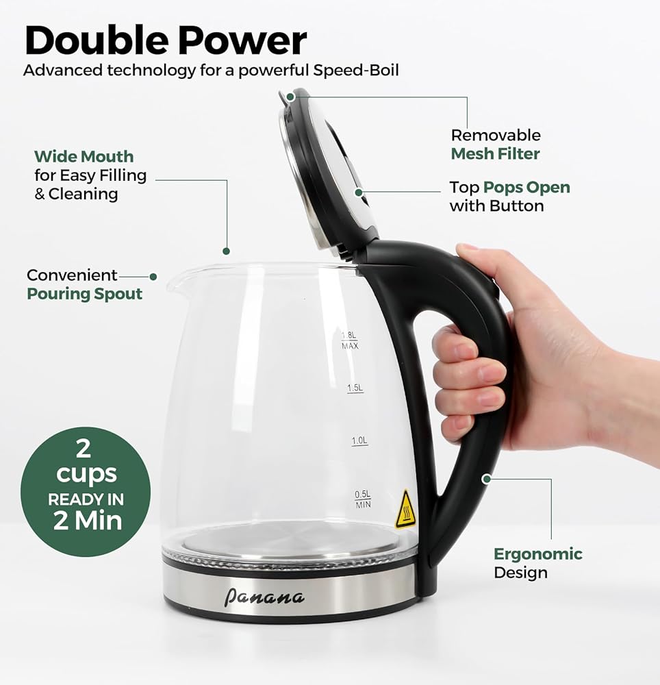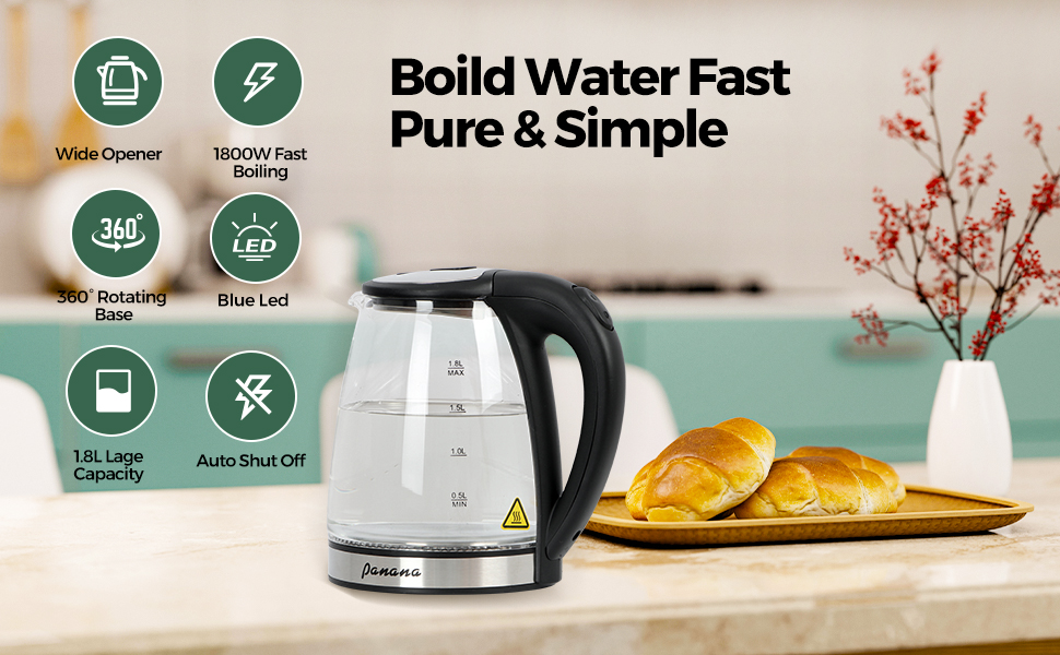 Fast Boiling: With a power rating of 1200W and a capacity of 1.8 liters, this electric kettle rapidly boils water, making it perfect for quickly preparing tea, coffee, instant noodles, and more.