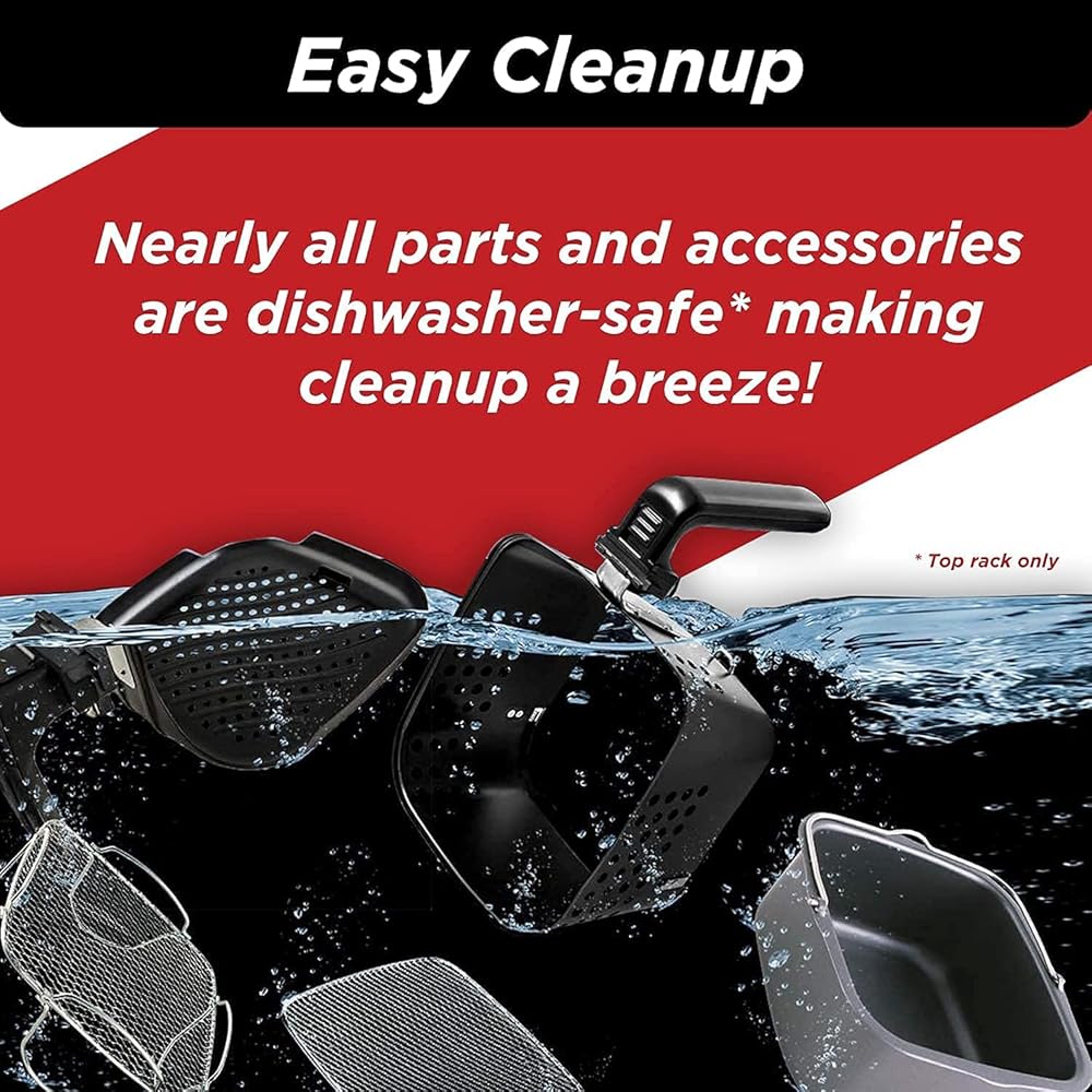 • آمنة للاستخدام في غسالة الأطباق وسهلة التنظيف: السلال والمقالي القابلة للإزالة وغير اللاصقة آمنة للاستخدام في غسالة الأطباق، مما يجعل التنظيف سهلاً. اقضي وقتًا أقل في التنظيف ووقتًا أطول للاستمتاع بوجباتك.