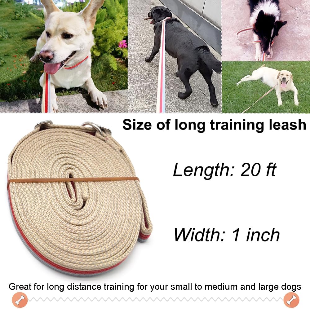 10FT/15FT/20FT LONG TRAINING LEASH: Unique designed this long slip leash with 1" wide soft Polyester web by 10foot, 15foot and 20foot different lengths. Great for your small medium and large dogs long distance training needs.
