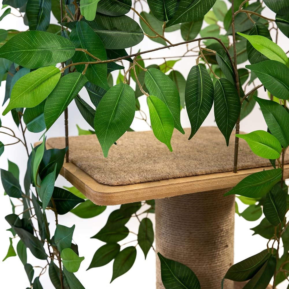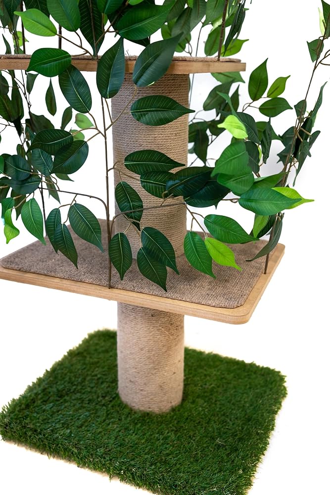 Give your feline friend the ultimate playground with the 4ft Minimal Cat Scratching Tree. This multi-functional cat tree is designed to provide your indoor cat with endless hours of entertainment, exercise, and relaxation. With a variety of scratching posts, perches, and hideaways, this cat condo offers everything your furry companion needs to stay healthy and happy. The sturdy construction and durable materials ensure that this cat tree can withstand even the most playful cats. The minimal design and neutral color scheme make it a stylish addition to any home decor while providing plenty of opportunities for climbing, scratching, and napping. The lifelike leaves add an extra touch of nature to create a sense of outdoor adventure for your indoor cat. This cat scratcher will minimize damage to your furniture by giving your kitty an appropriate place to satisfy their natural instincts. Give your cats the freedom they crave by providing them with a safe and secure space to climb, stretch, play, and relax. With its innovative design and high-quality construction, the 4ft Minimal Cat Scratching Tree is the perfect addition to any modern home seeking a functional yet beautiful piece of cat wall furniture. So invest in the well-being of your feline family member today!