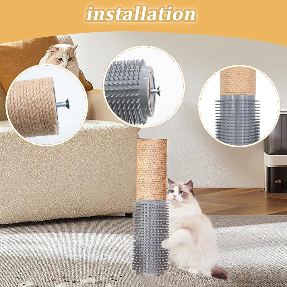 Attached cat grooming brush to the lower part, allows your cat to satisfy their scratching and itching habits while simultaneously grooming and massaging themselves.