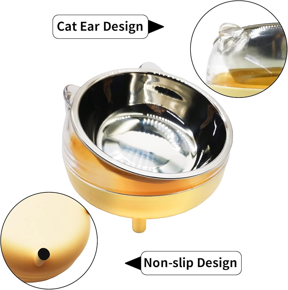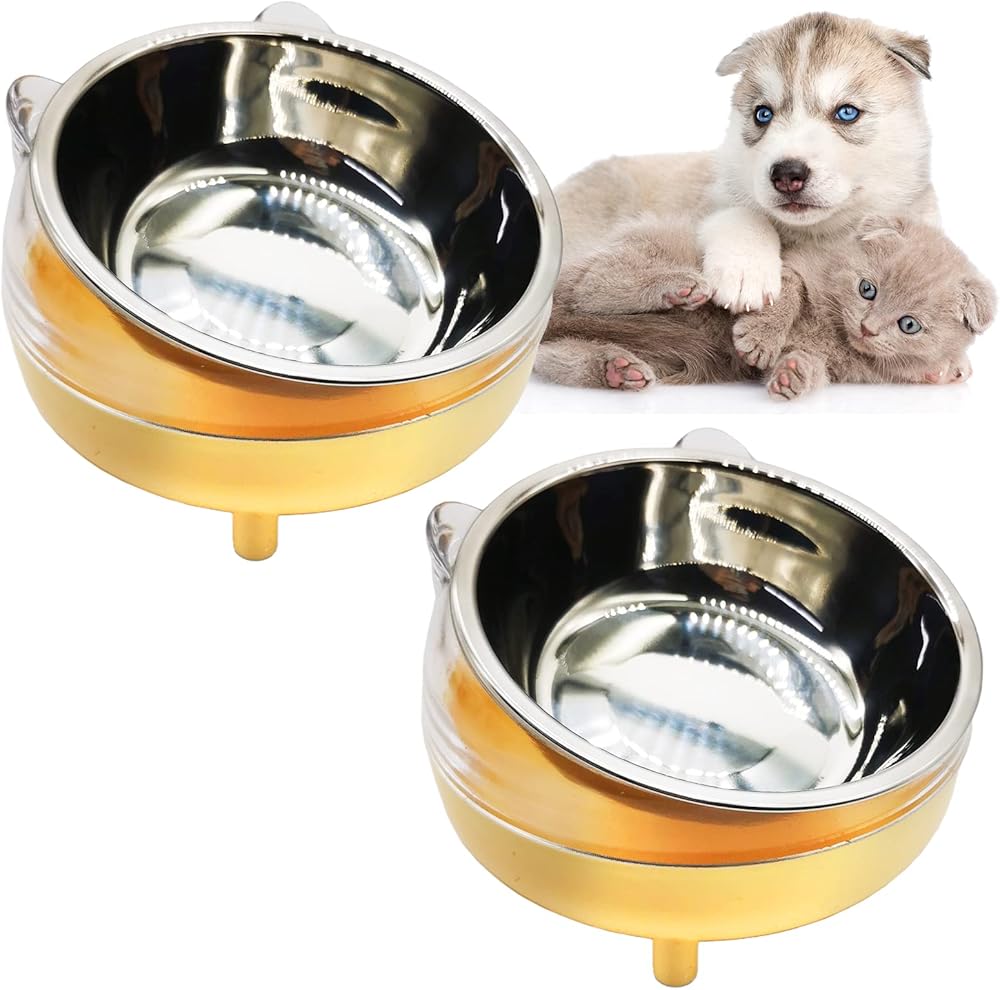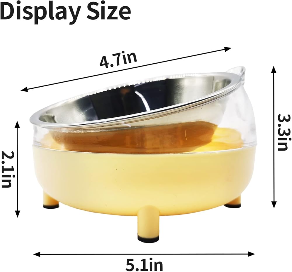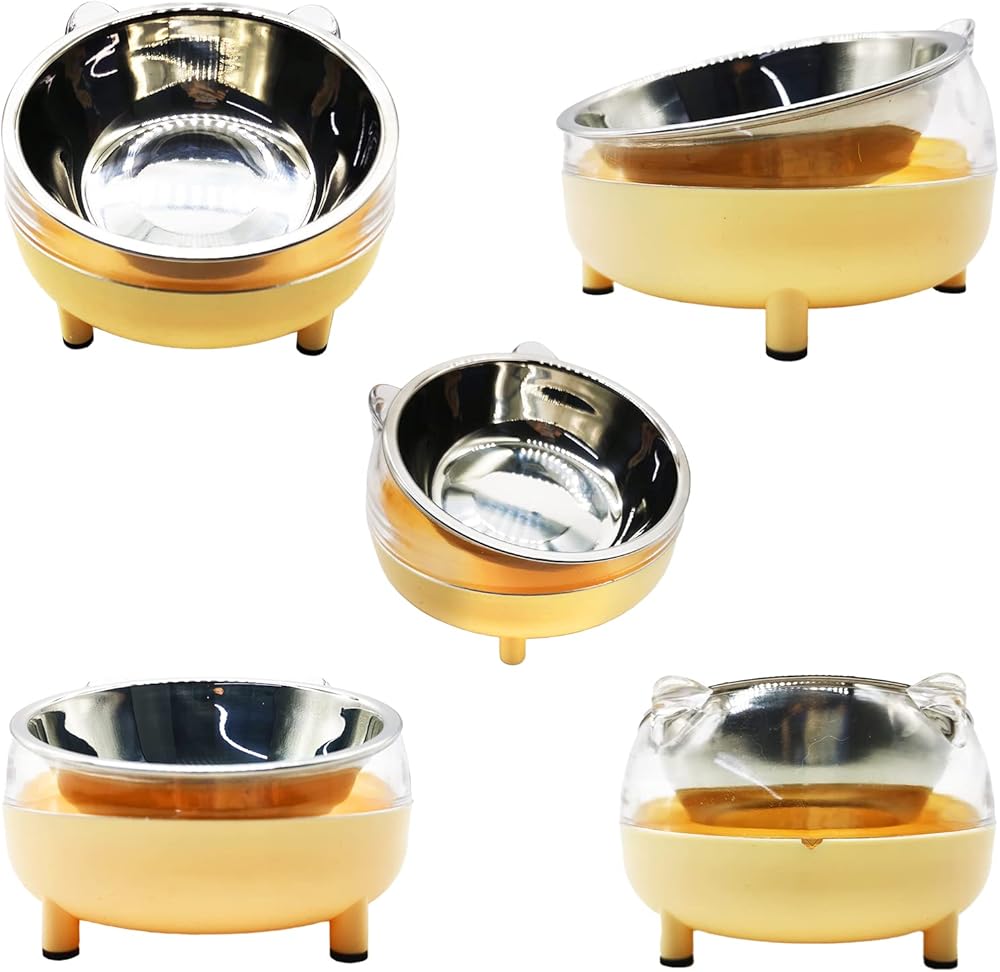 وعاء طعام للكلاب من الفولاذ المقاوم للصدأ مكون من قطعتين بزاوية 15 درجة، طبق طعام للقطط مصنوع من الفولاذ المقاوم للصدأ وقابل للفصل لحماية العمود الفقري (أصفر)
