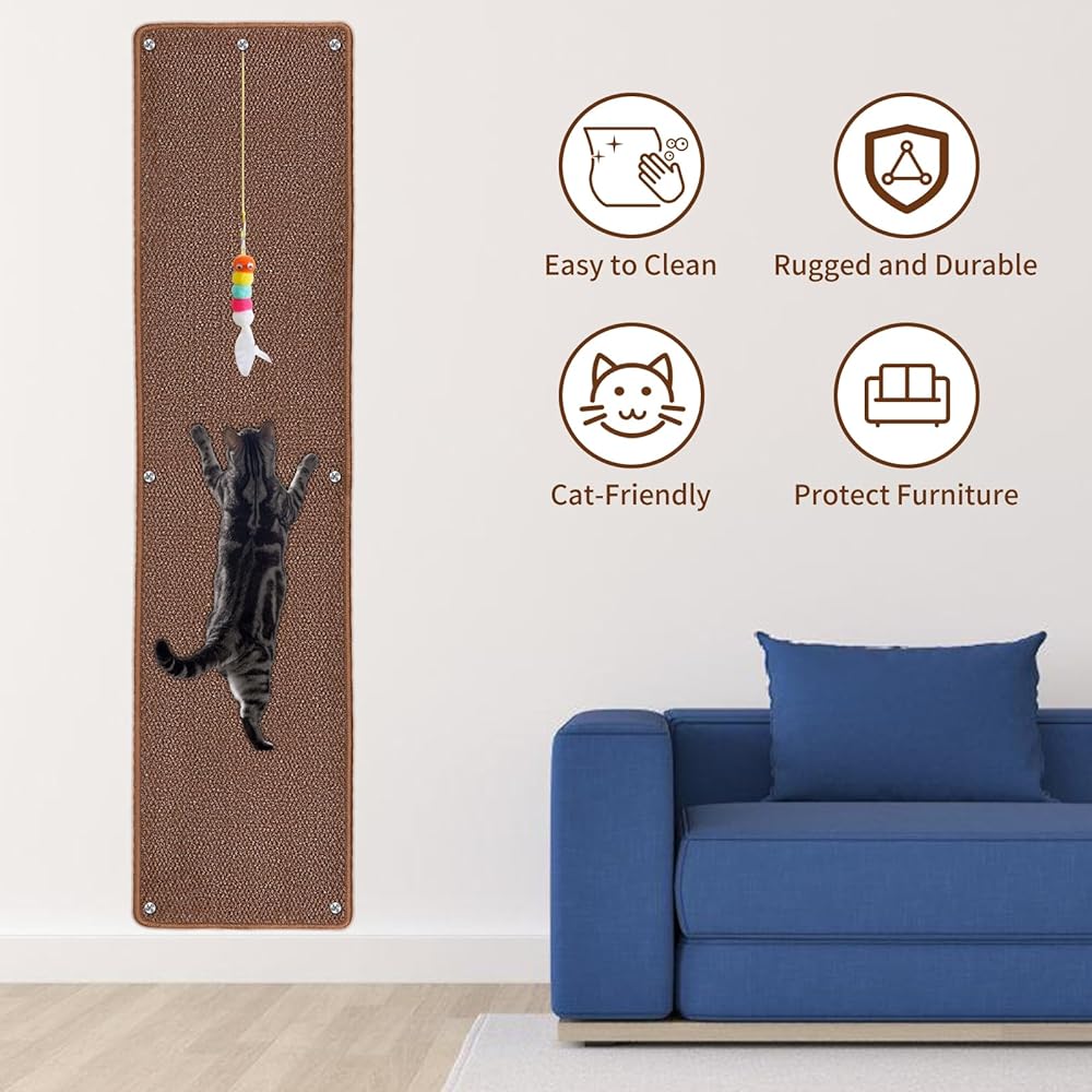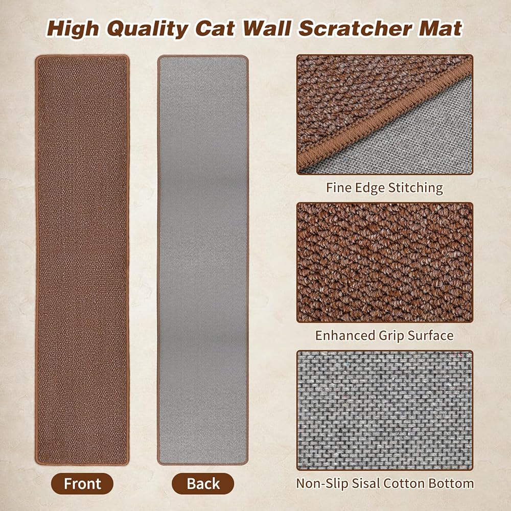 حجم حصيرة تسلق القطط: حجم سجادة الحائط للقطط هو 71 بوصة × 15.7 بوصة × 0.32 بوصة، ويمكن أن تغطي مناطق أكبر من الجدران والأريكة والأرضيات لمنعها من الخدش والتلف أثناء لعب القطط.