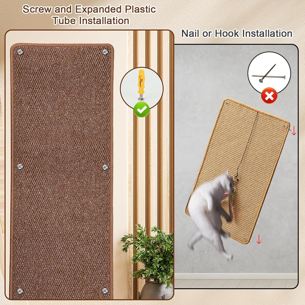 سجادة خدش القطط المثبتة على الحائط: تأتي أداة خدش القطط المتسلقة DIY مع 16 براغي M4 * 30 و16 قطعة Ф 6 * 30 أنبوب توسيع بلاستيكي، مثبتة بشكل أكثر ثباتًا وثباتًا، وليس من السهل أن تسقط