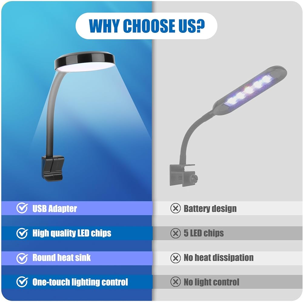 1. Illuminate your aquatic world with our versatile and energy-efficient aquarium light! With 360° rotation and USB power, it's the perfect way to brighten up your fish tank.