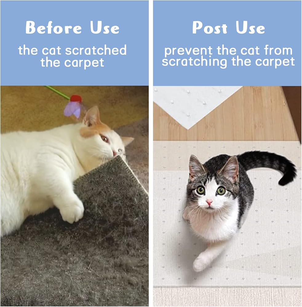 1. Our 5.2Ft Cat Scratch Carpet Protector is the perfect solution for pet owners who want to protect their carpets from cat damage. Made from durable PVC materials, it is hypoallergenic and safe for pets.