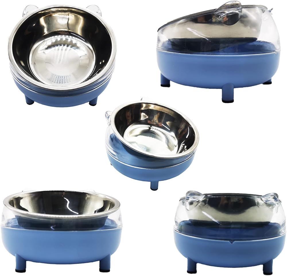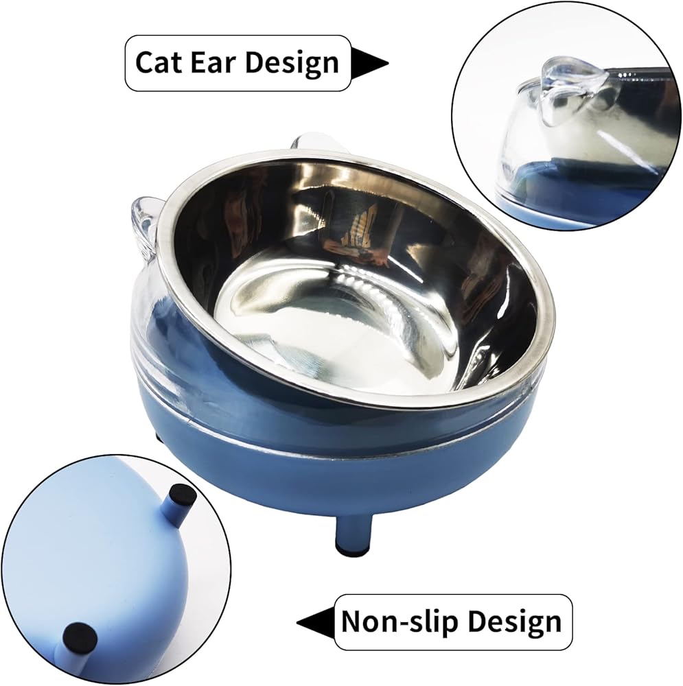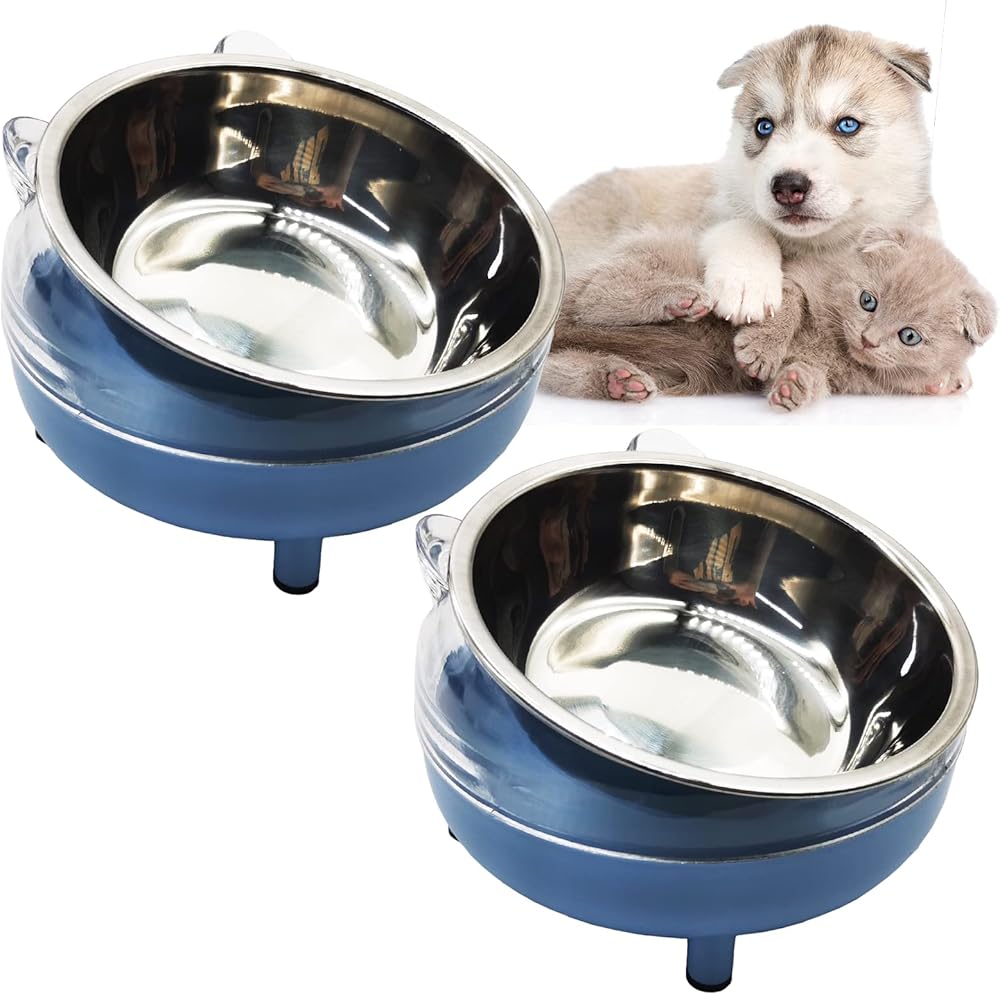 طبق طعام للقطط من الفولاذ المقاوم للصدأ مائل 15 درجة، طبق طعام للقطط من الفولاذ المقاوم للصدأ، قطعتين، غير قابل للانزلاق، قابل للفصل، لحماية العمود الفقري (أزرق)