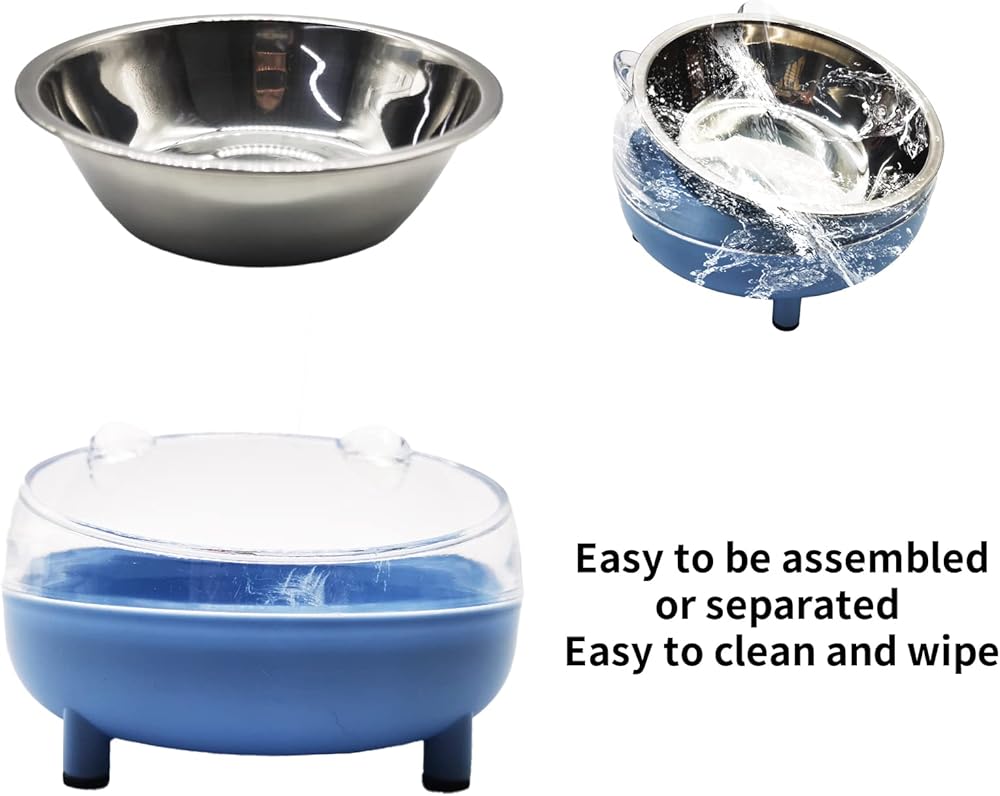 • Easy to Clean: Our raised cat food bowl is detachable, making it easy to clean and maintain. Simply rotate the cat food bowl and the base, and the stainless steel pet bowl will separate perfectly. It is safe to wash by hand or in a dishwasher, ensuring that your pet's bowl is always clean and hygienic.