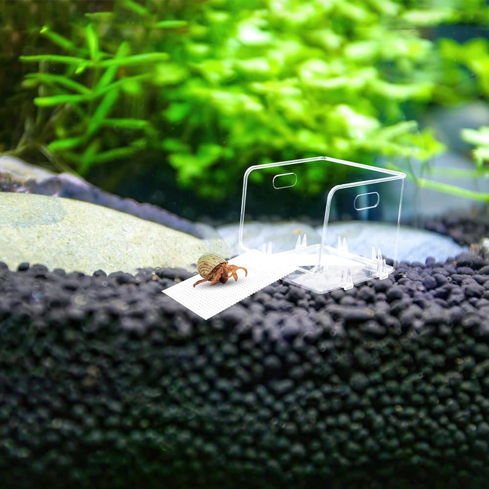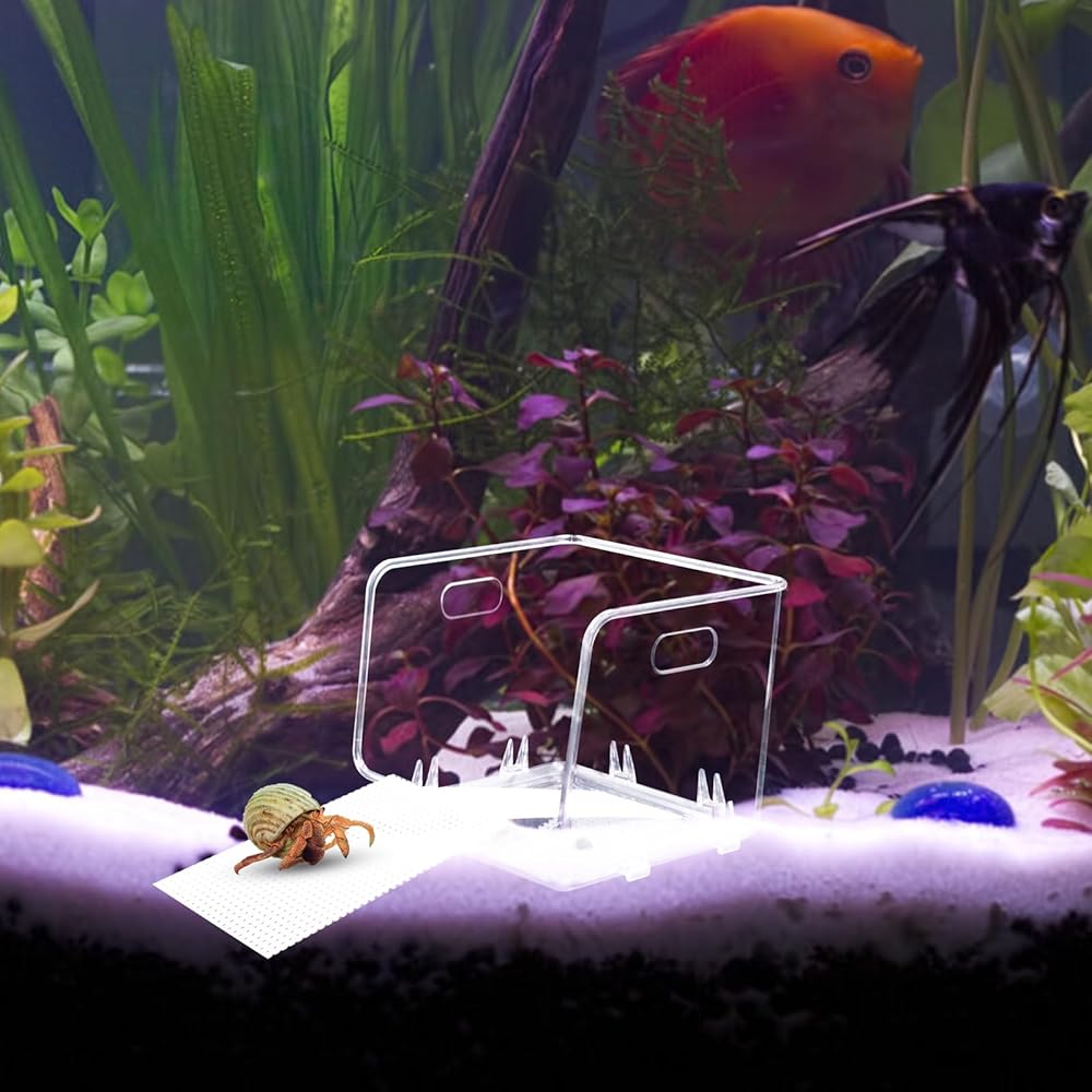 Transparent Hermit Crab Water Tank with Large Opening, Hermit Crab Climbing Toy Cuttable Ramp, Aquarium Tank Cage Salt Water Pool Accessories, Hermit Crab Habitat for Small or Medium Hermit Crab