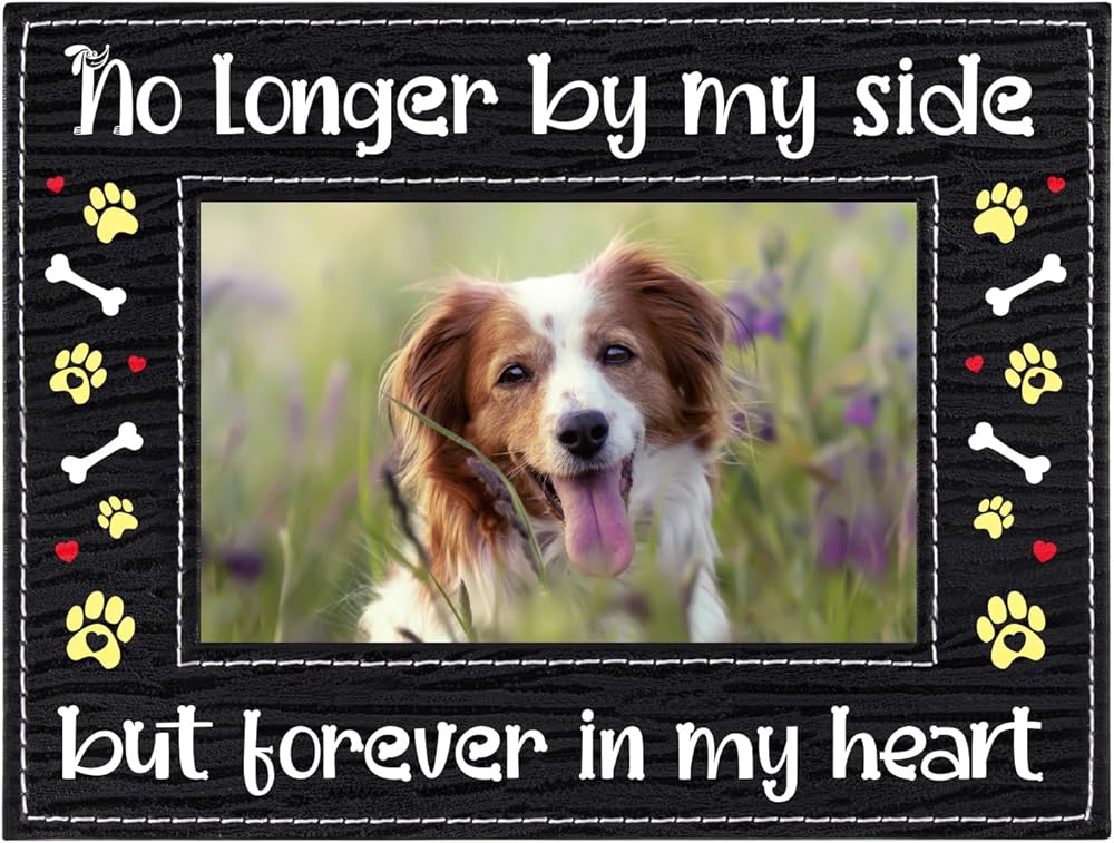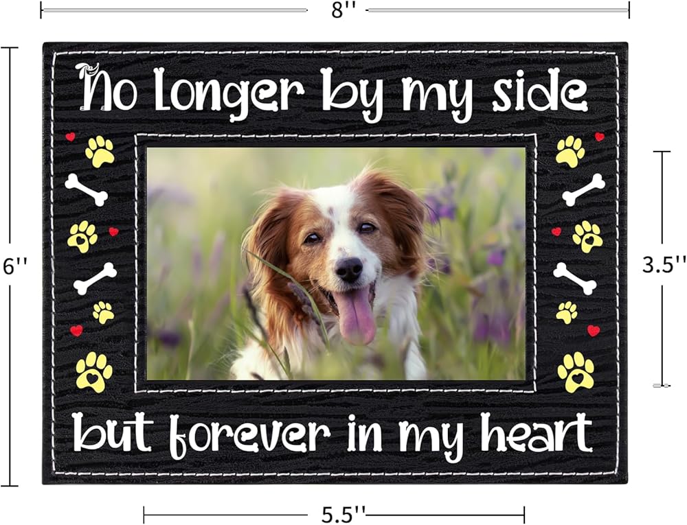 PETCEE Dog Memorial Picture Frame Pet Memorial Gifts Forever in My Heart Dog Bereavement Gift Hold 4x6 Photos in 6x8 Leather Frame Loss of Dog Sympathy Gift Dog Memorial Gifts for Loss of Pet Dog