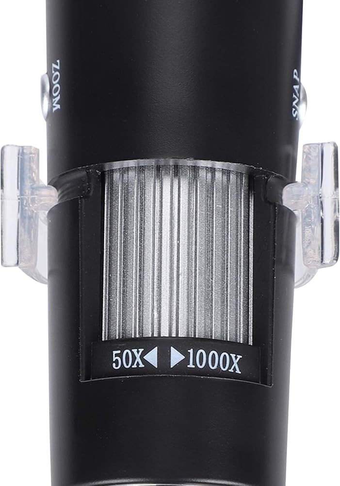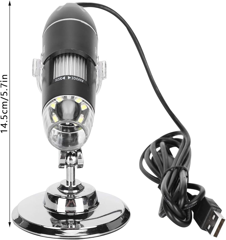 Builtin 8 LED lights, digital microscope's 2 adjusting knob can change the focus and brightness.