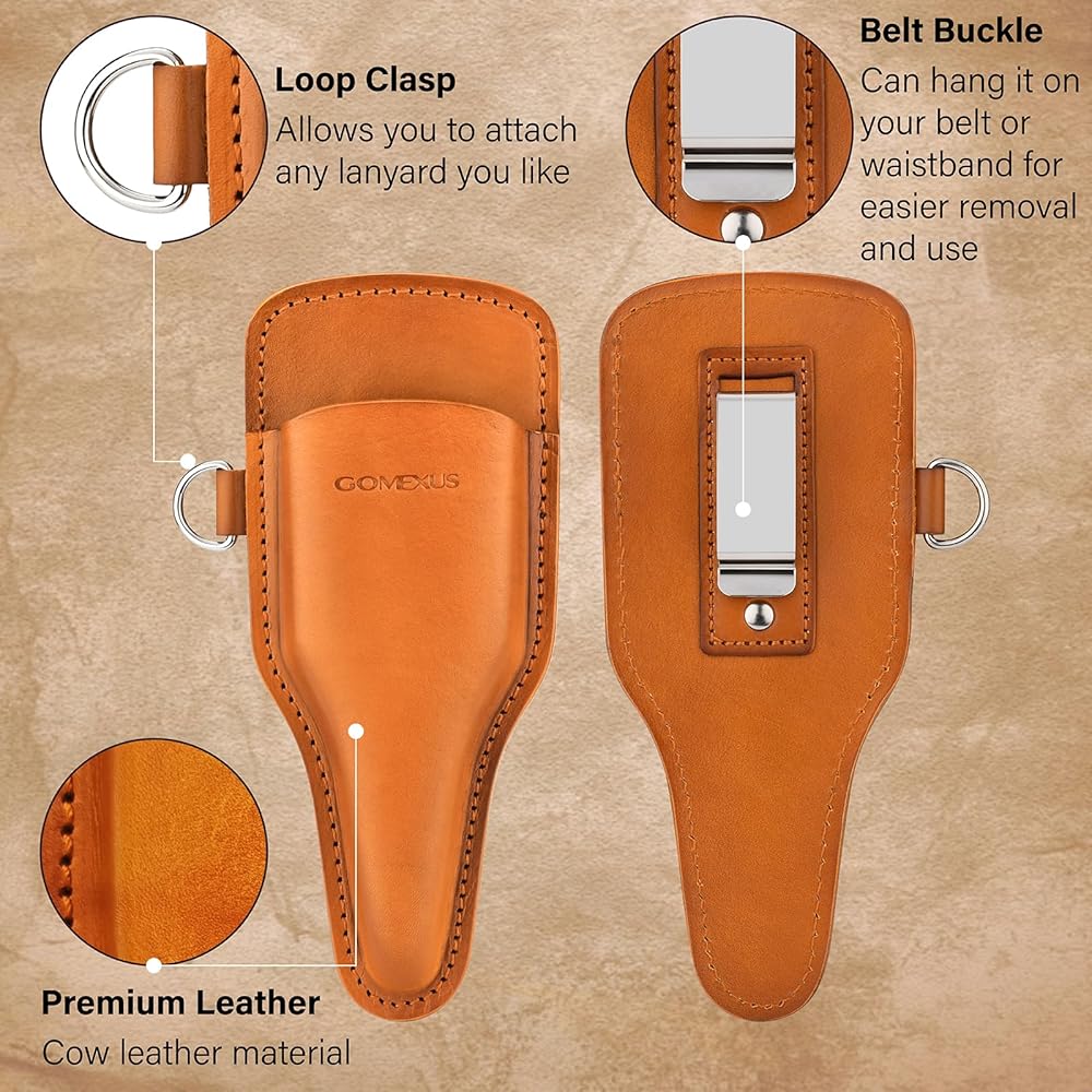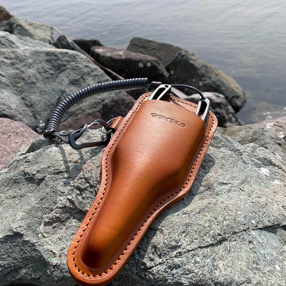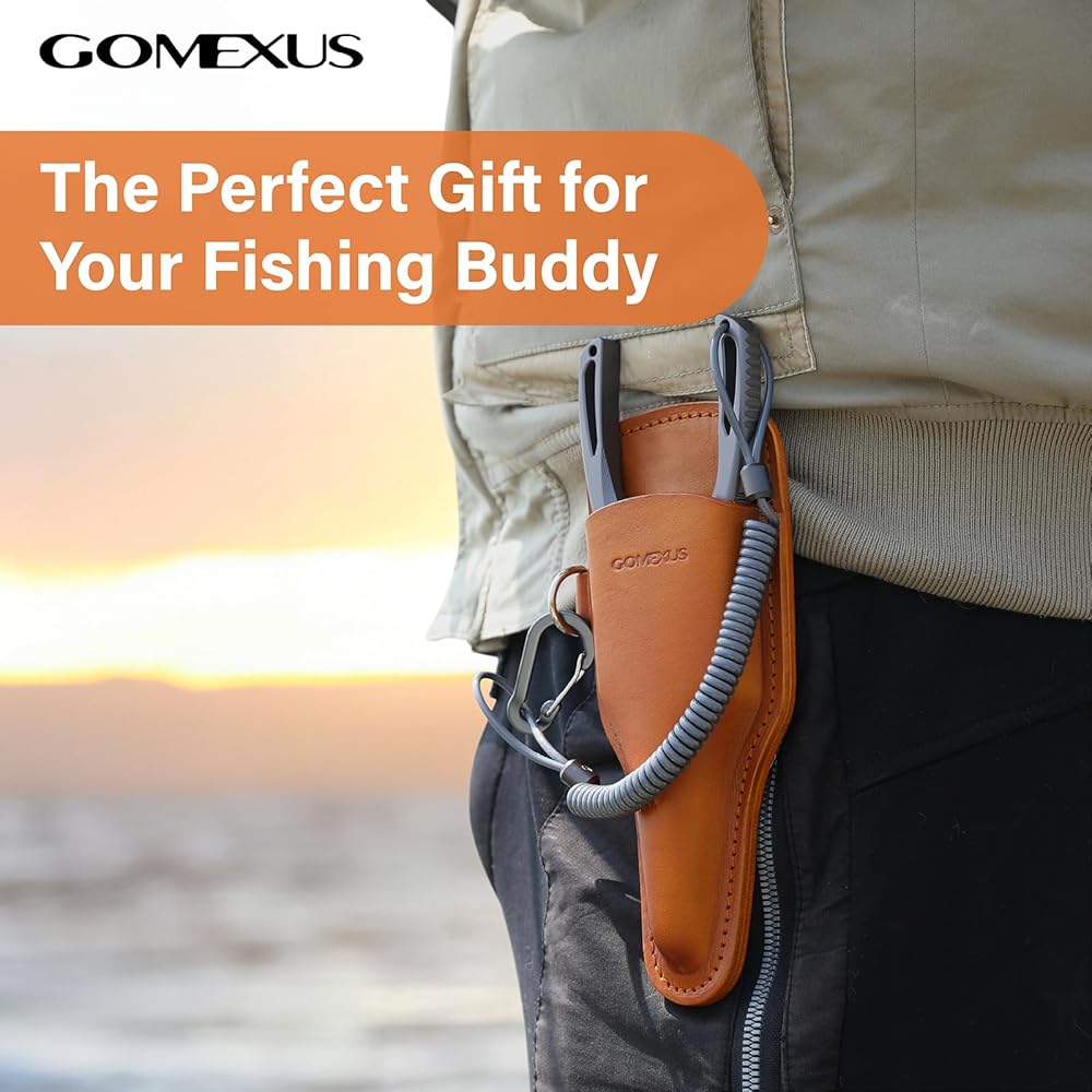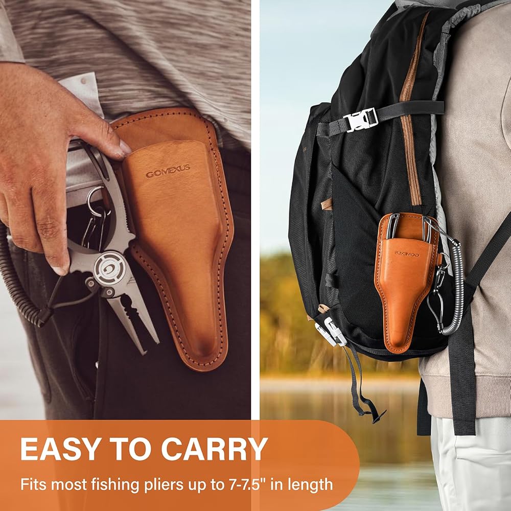 Gomexus Fishing Pliers Sheath and Retractable Lanyard,Cowhide Leather Holsters for Most Lure Tongs