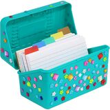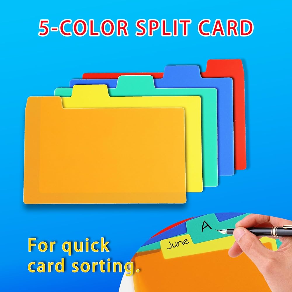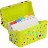 INDEX CARD HOLDER SET: The set contains 1 high-quality green index card box, 100 ruled index cards 3x5-inch, 5 plastic colorful dividers, and 80 number and letter stickers.