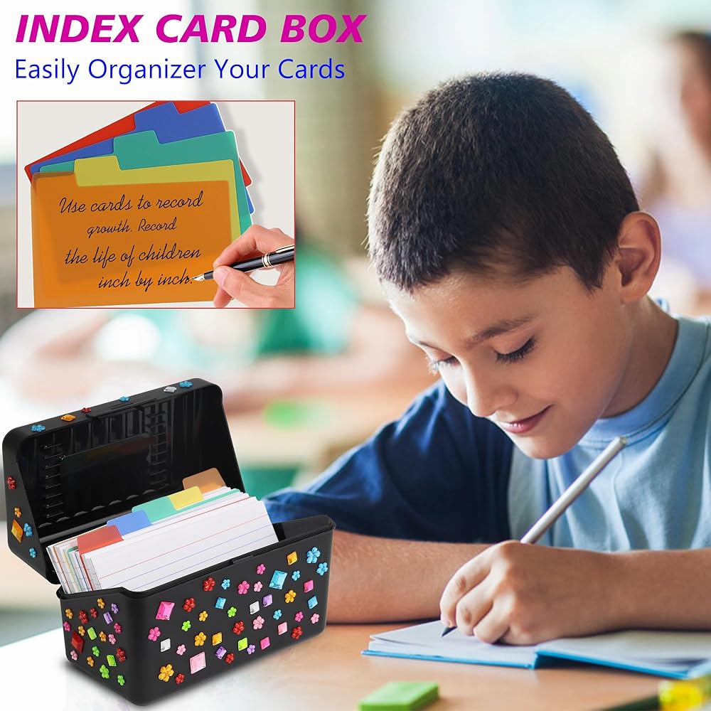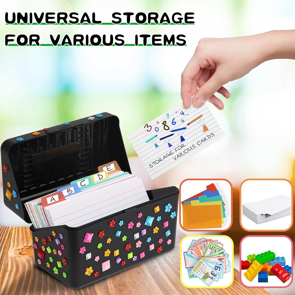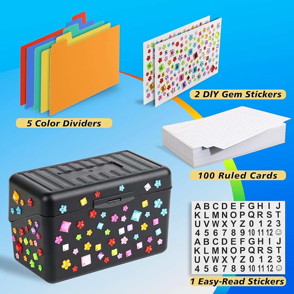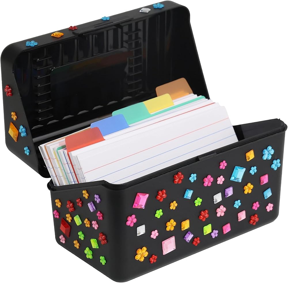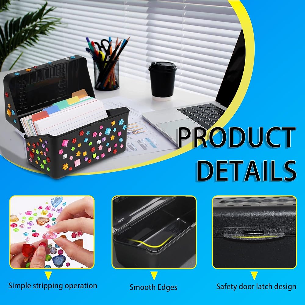 EXQUISITE INDEX CARD BOX: Utilize high-end gemstone stickers to unleash your creativity and make your note box unique.There are enough gem stickers of different sizes, colors and patterns to cover the entire box. you can design to your heart's content. Place it on your desk and watch it become the center of attention.