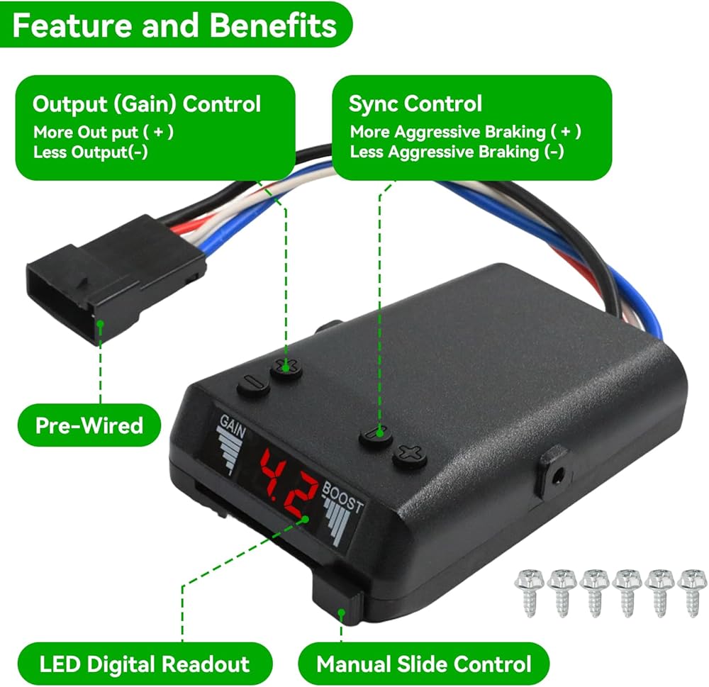 سهولة التركيب: مجهزة بجميع الملحقات اللازمة لتثبيت المنتج. تستخدم وحدة التحكم في الفرامل سرج سلكي للتوصيل والتشغيل، بالإضافة إلى دعامة تثبيت تقليدية لتبسيط عملية التثبيت. يسمح ذلك بالاتصال/الفصل السريع بين وحدة التحكم ومركبة السحب للتثبيت أو الإزالة بسرعة وسهولة.