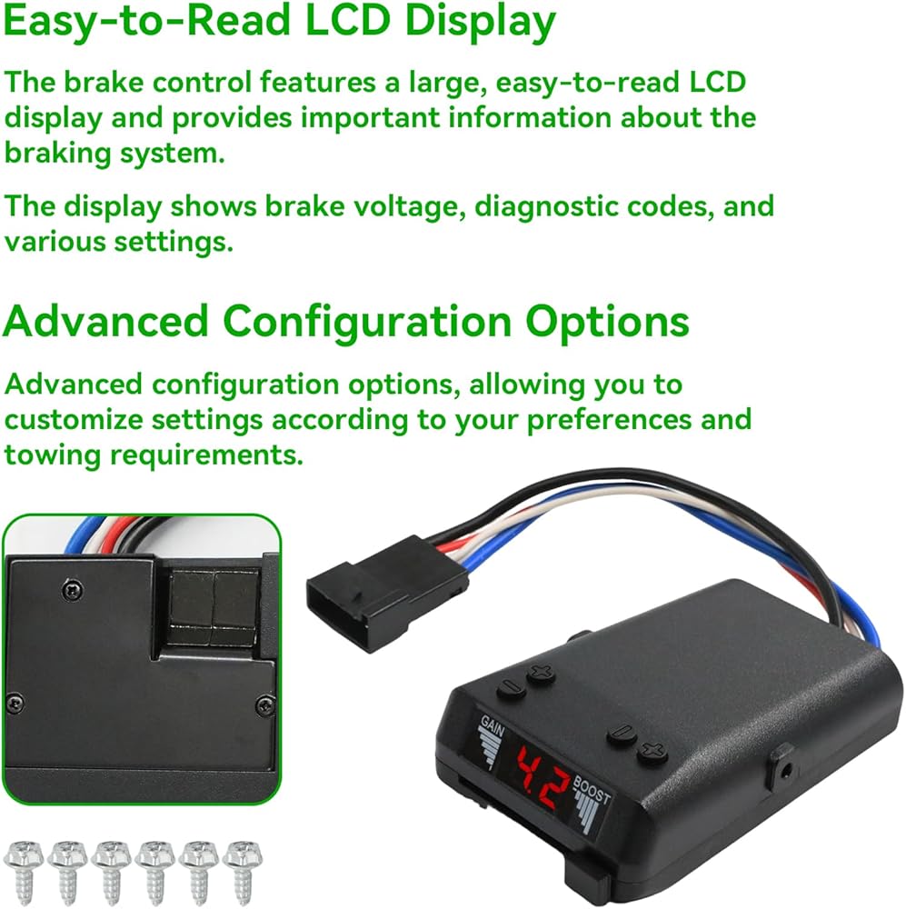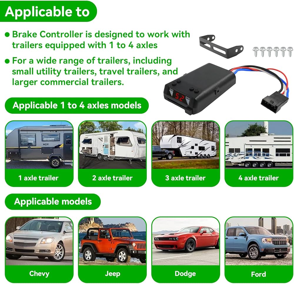 توافق متعدد الاستخدامات: تم تصميم مجموعة التحكم في الفرامل الكهربائية الخاصة بنا للتوافق العالمي مع السيارة، وتتكامل بسلاسة مع سيارتك الحالية، بغض النظر عن الطراز أو الطراز. تم تصميم وحدة التحكم هذه لإدارة 1 إلى 4 محاور مكابح (تدعم 2 إلى 8 مكابح)، وهي تتفوق في سيناريوهات السحب للخدمة الشاقة والاستخدام المتكرر للمقطورة.