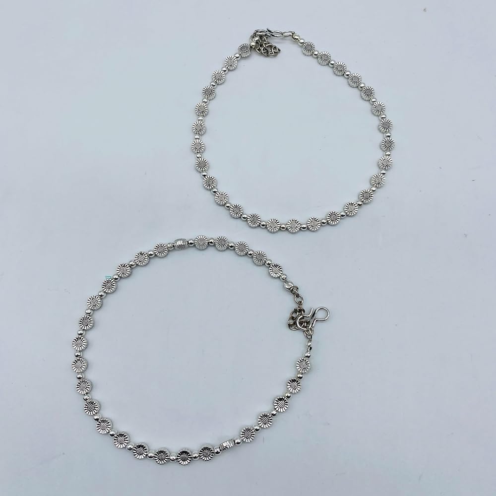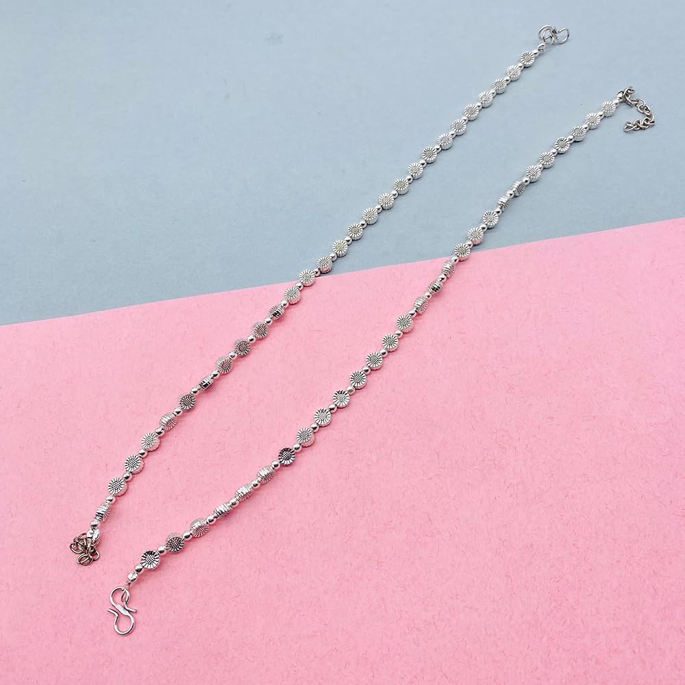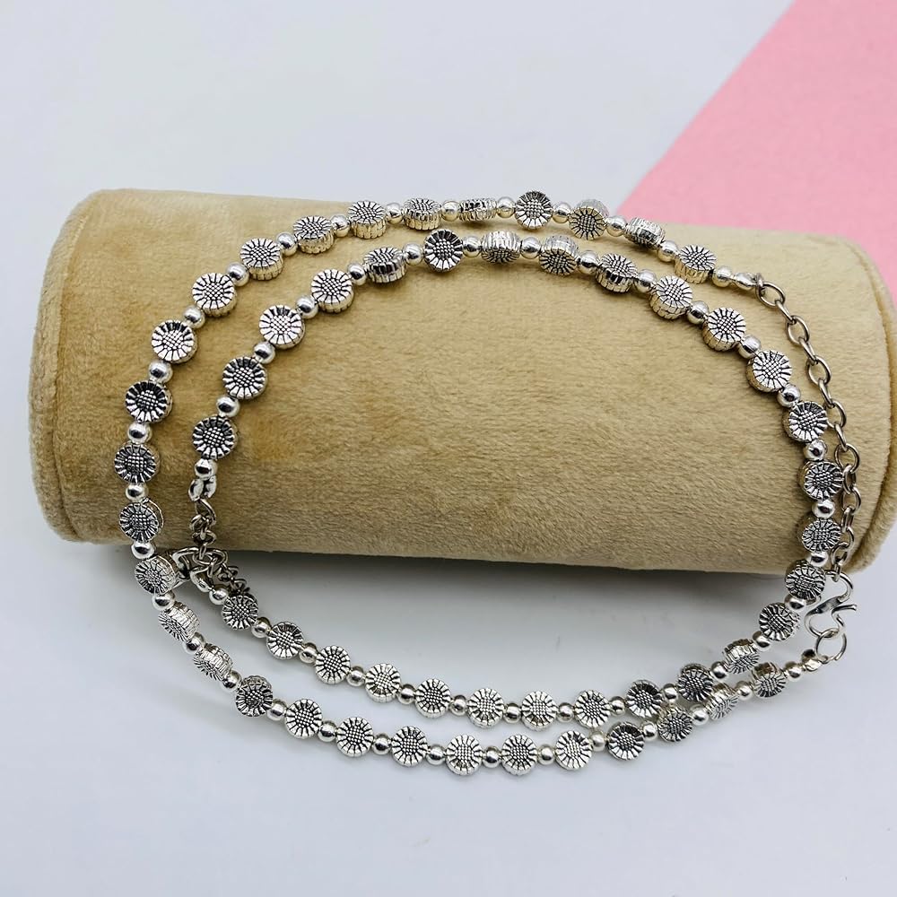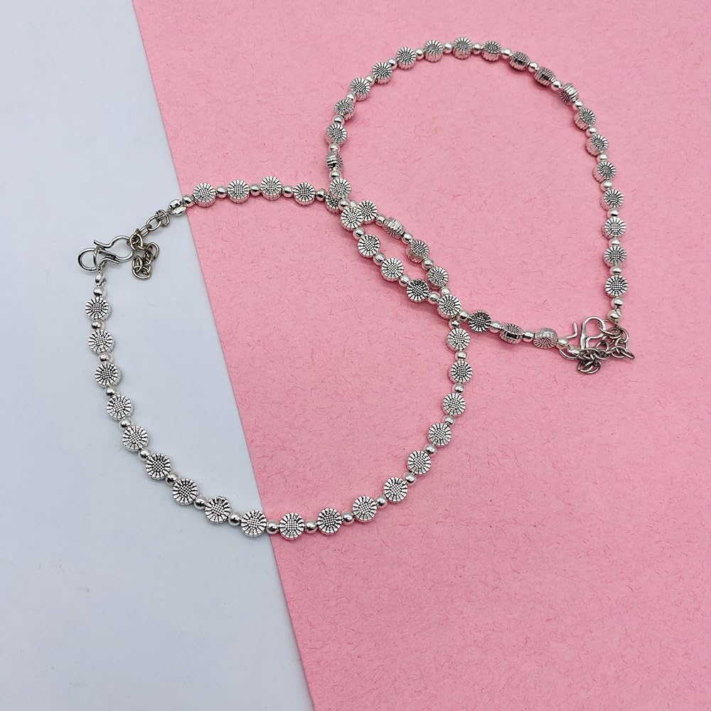 Ethnic Flair: These anklets feature an oxidized silver finish and intricate pearl detailing, adding a touch of cultural elegance to any outfit.