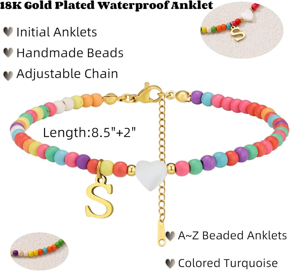 Ankle Bracelets for Women Initial Anklets Waterproof Bead Ankle Bracelets
