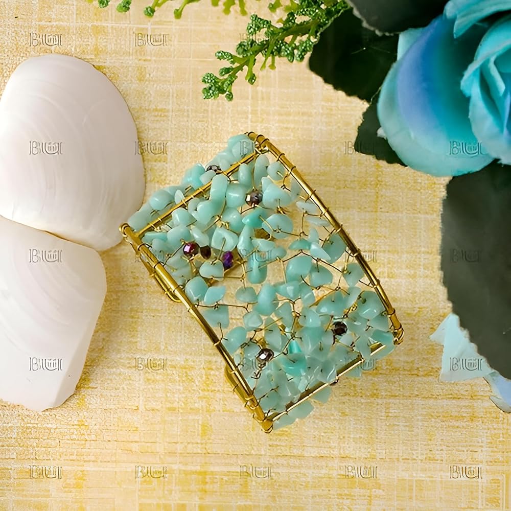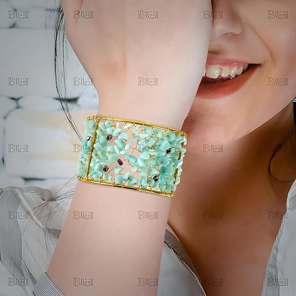 • ✅أحجار العقيق باللونين الفيروزي والذهبي: هذا الإكسسوار مزين بأحجار العقيق الجميلة باللونين الفيروزي والذهبي، وهو تحفة بصرية. تكمل درجات اللون الفيروزي الهادئ والذهبي الغني للأحجار بعضها البعض، مما يخلق جمالية متناغمة وآسرة.