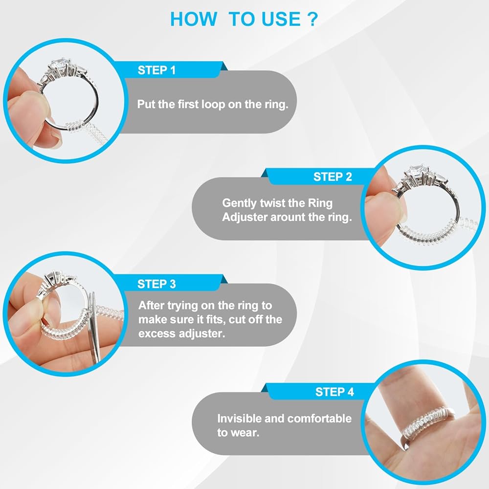 تركيب سهل بنفسك: لا حاجة لتغيير الحجم باهظ الثمن أو زيارة المجوهرات بعد الآن! يمكن تركيب أداة ضبط الخواتم الخالية من المتاعب لدينا بسهولة في المنزل، مما يتيح لك تغيير حجم خواتمك دون عناء وتحقيق الضيق المطلوب دون أي مساعدة احترافية.